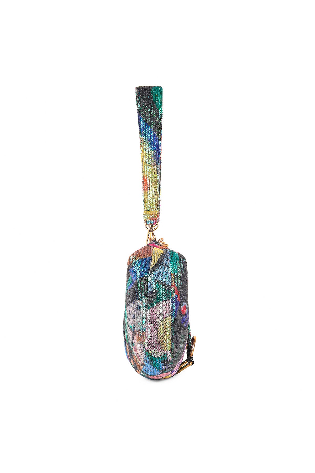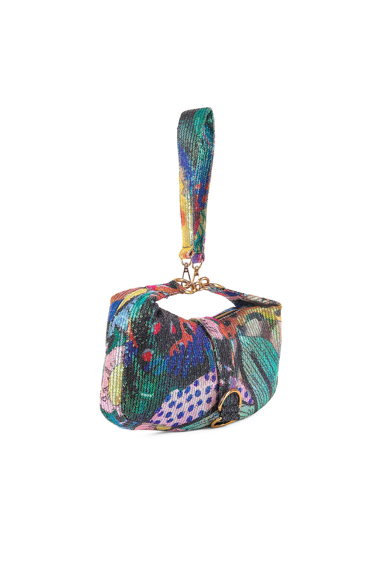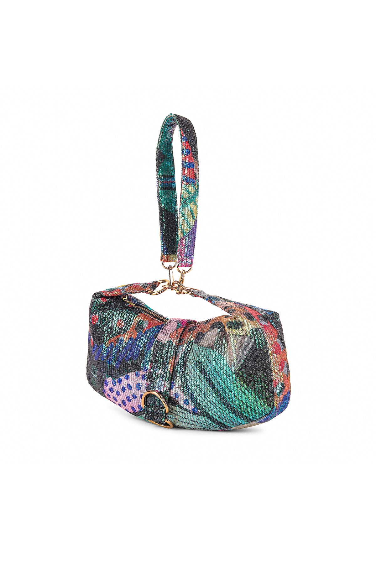 Kinfolk multicolor printed sequin tulle hobo bag with band handle