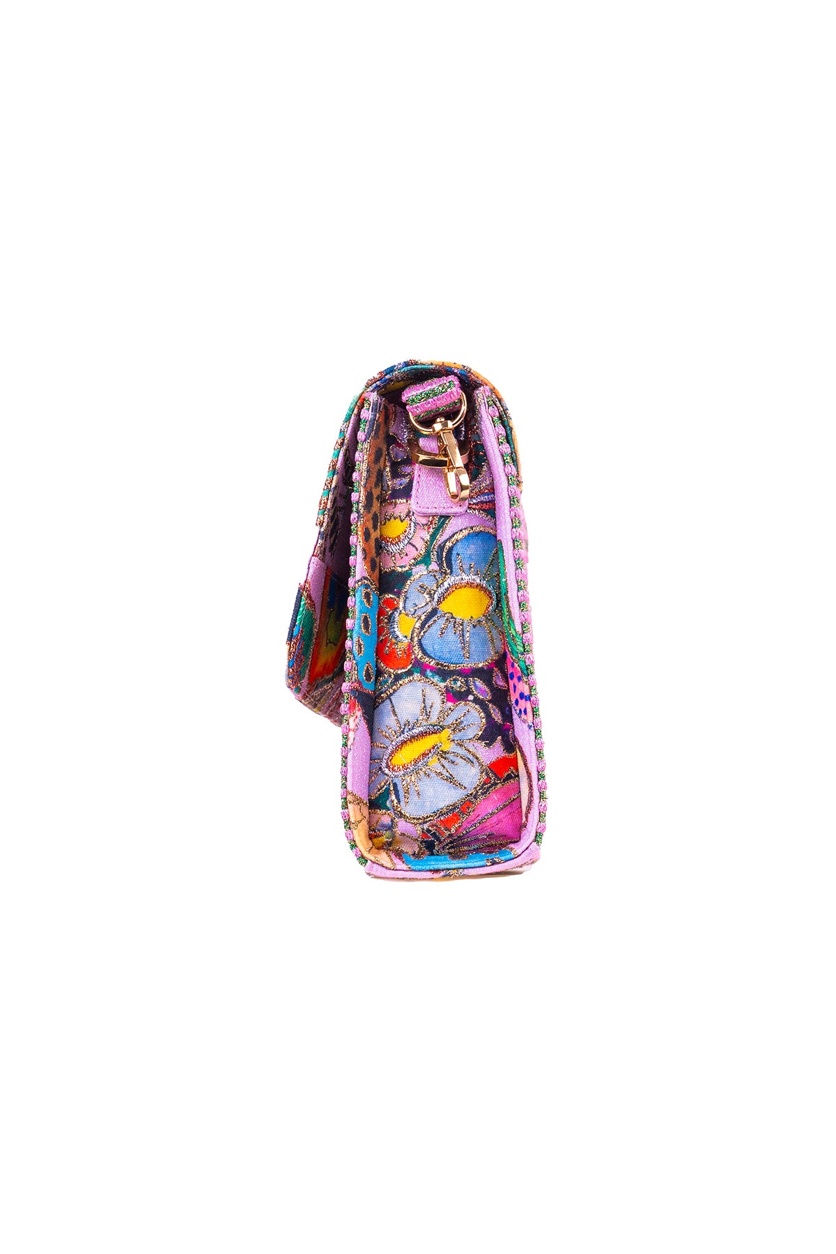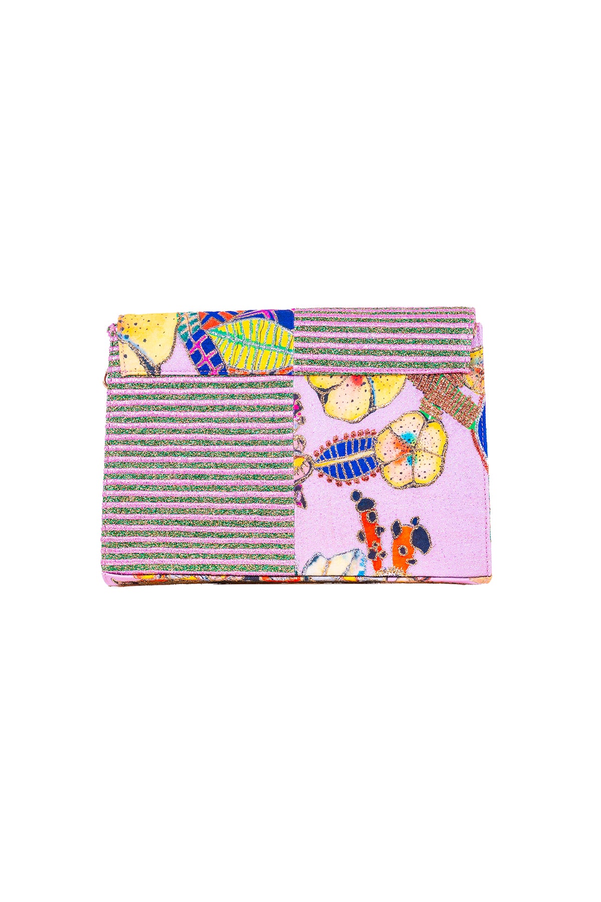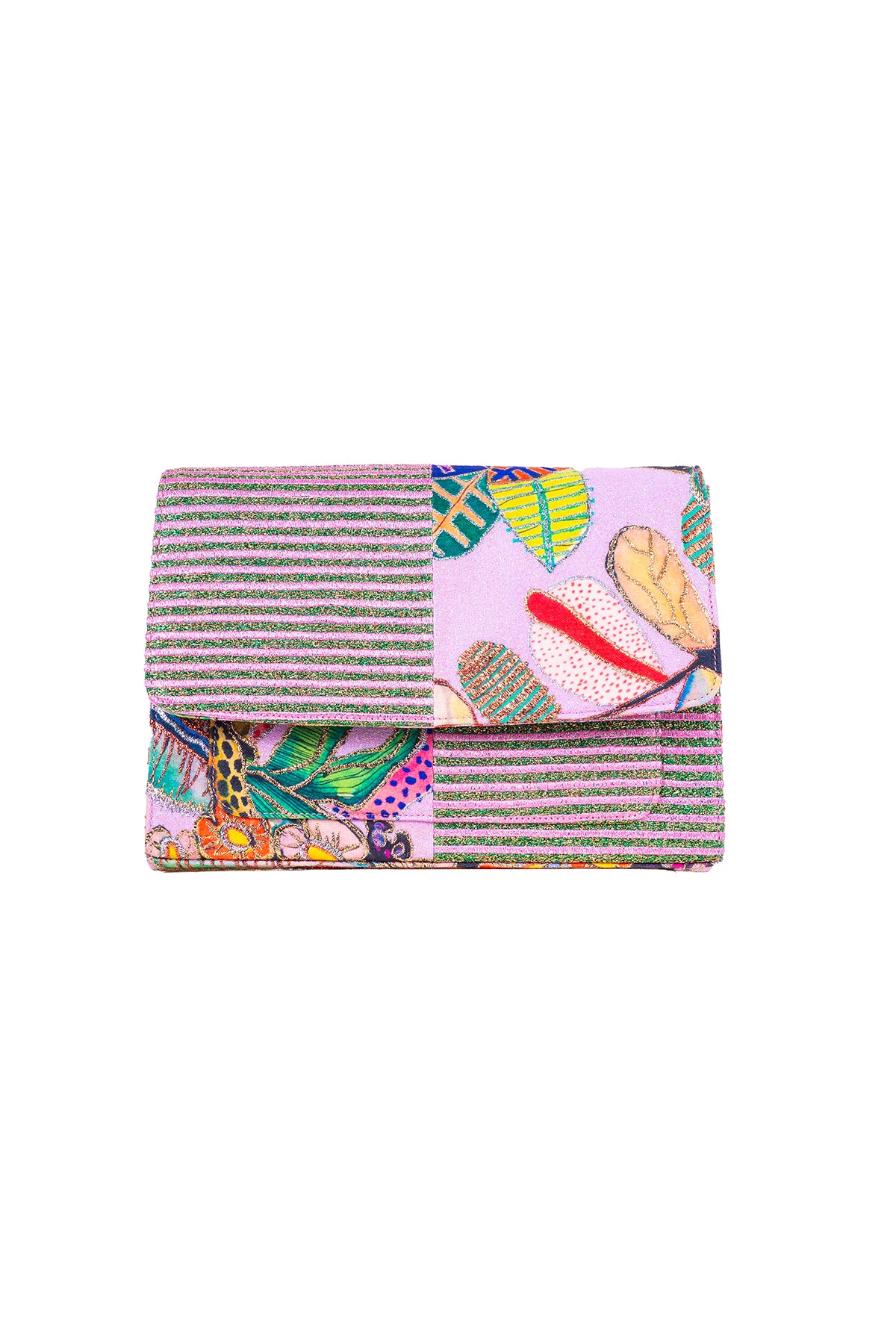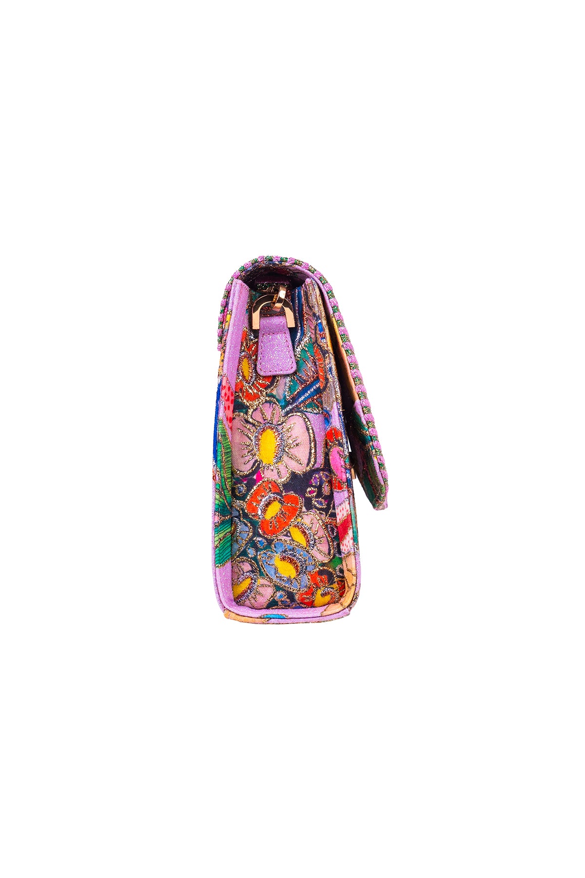 Kinfolk lilac printed embellished canvas baguette bag with lock detail & chain handle