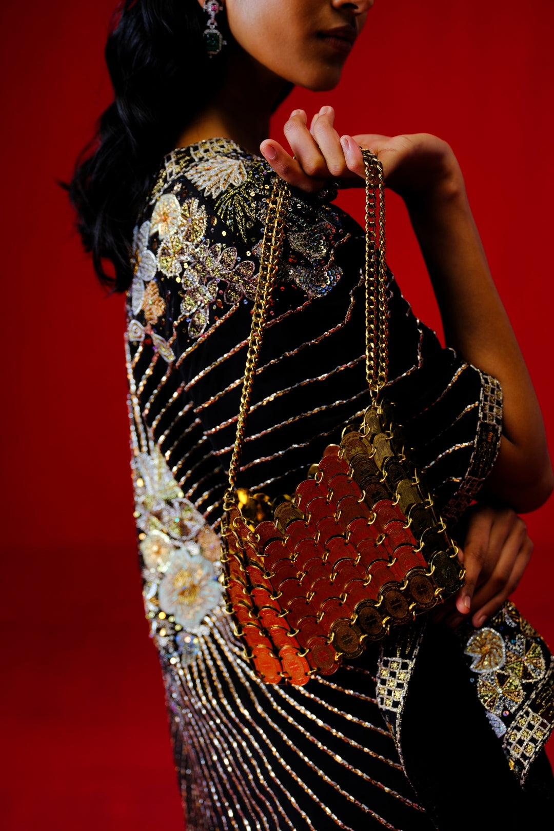 This piece by Aisha Rao is handcrafted using upcycled fabrics and artisan techniques. Variations in color, embroidery, and texture are intentional and reflect the handmade nature of the garment. These differences are a mark of its uniqueness and craftsmanship. No two pieces are exactly alike.