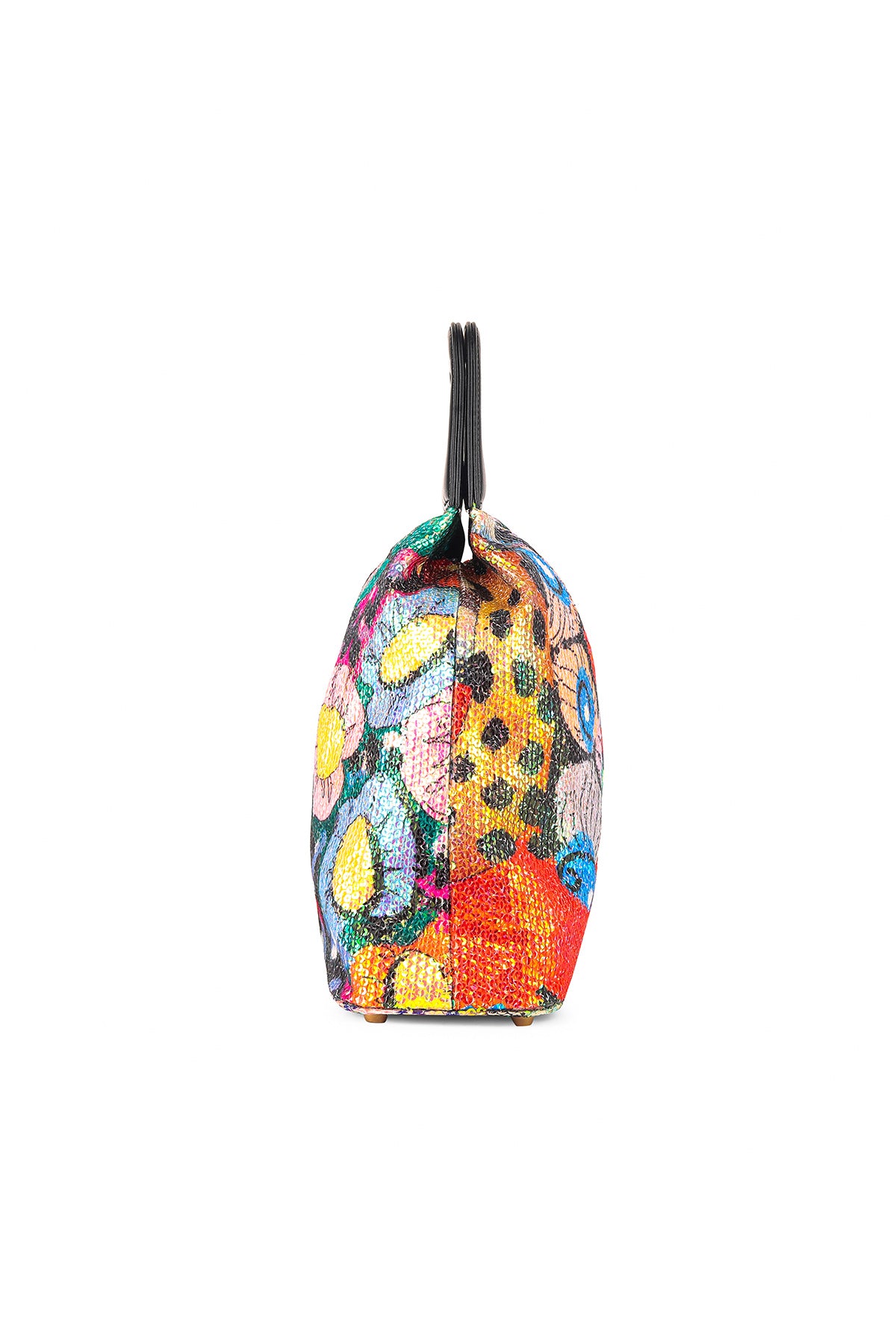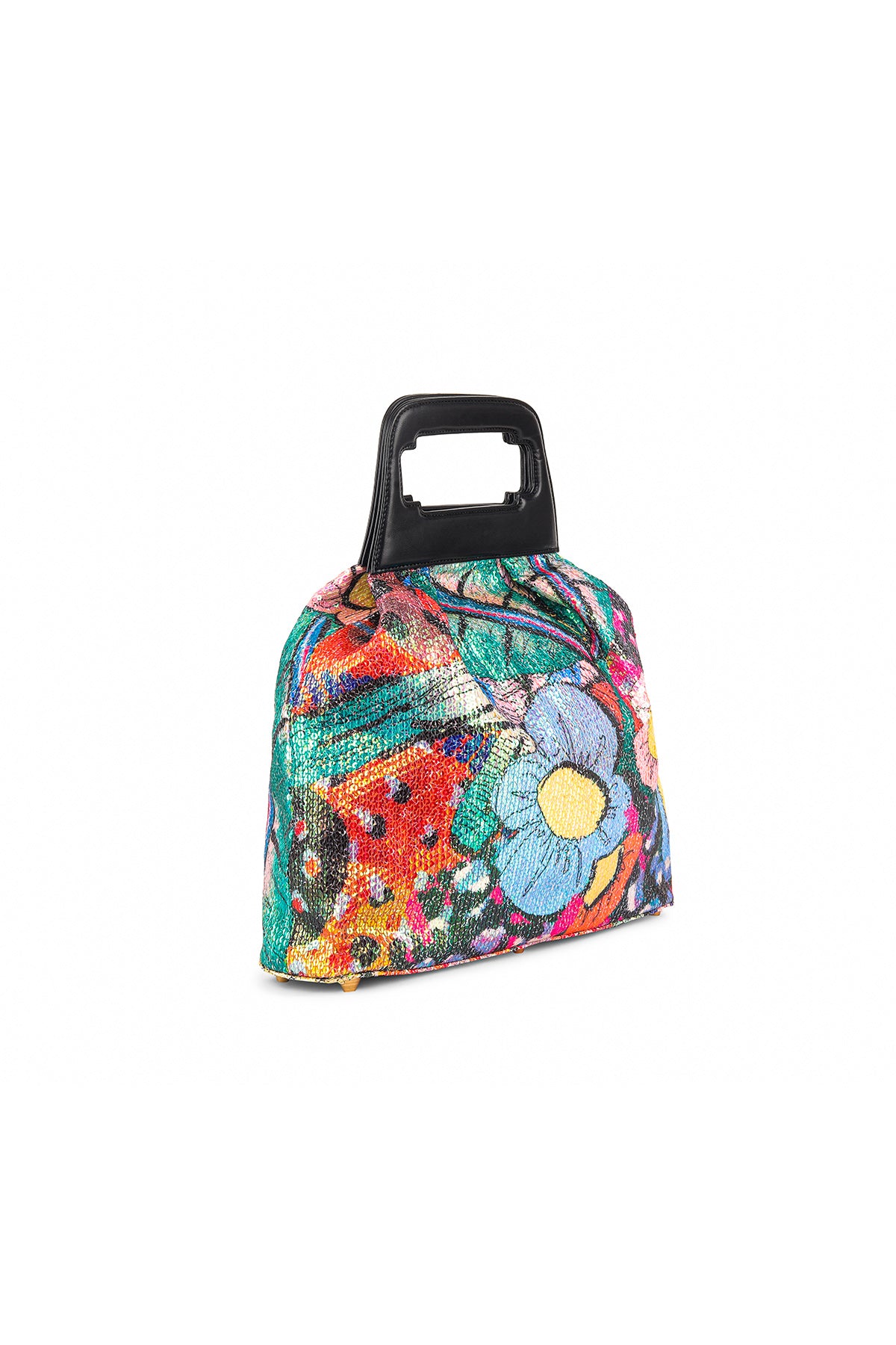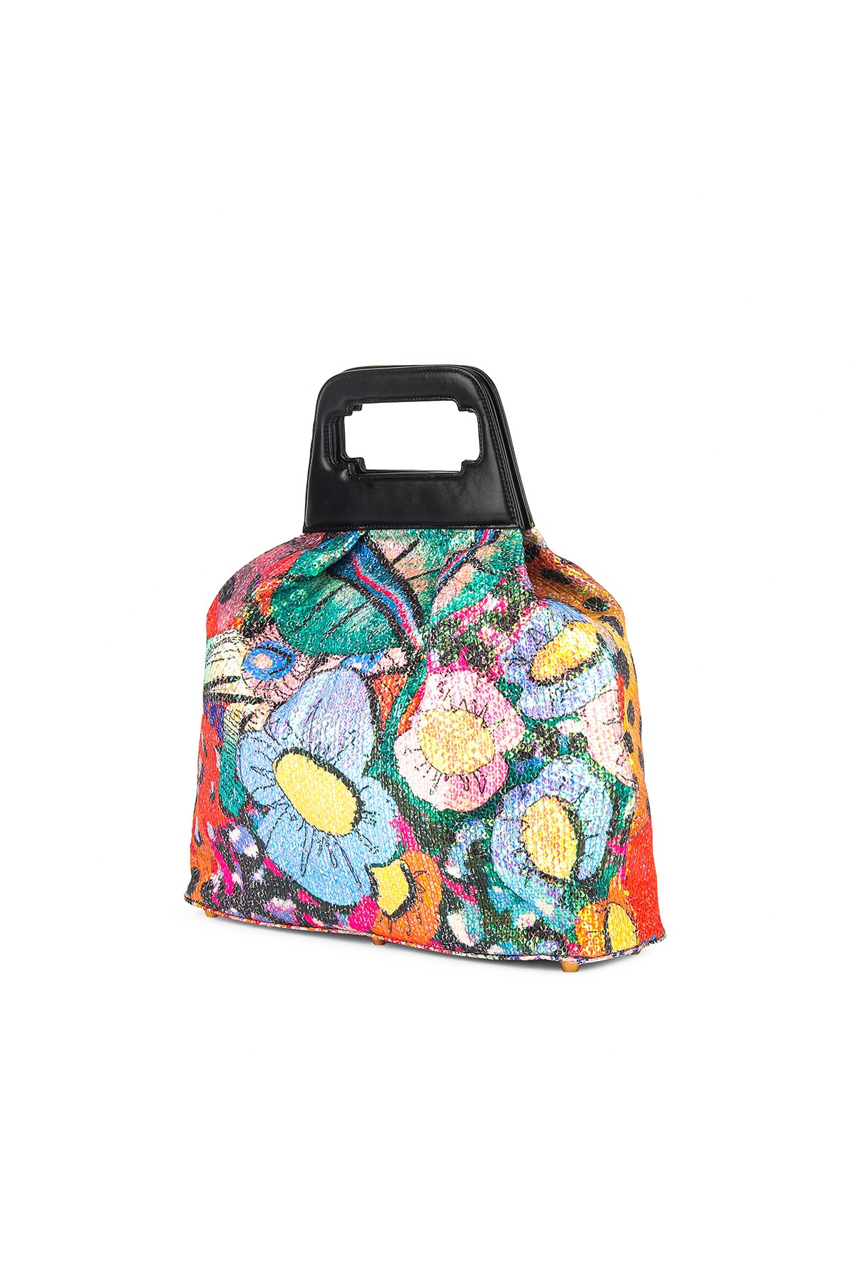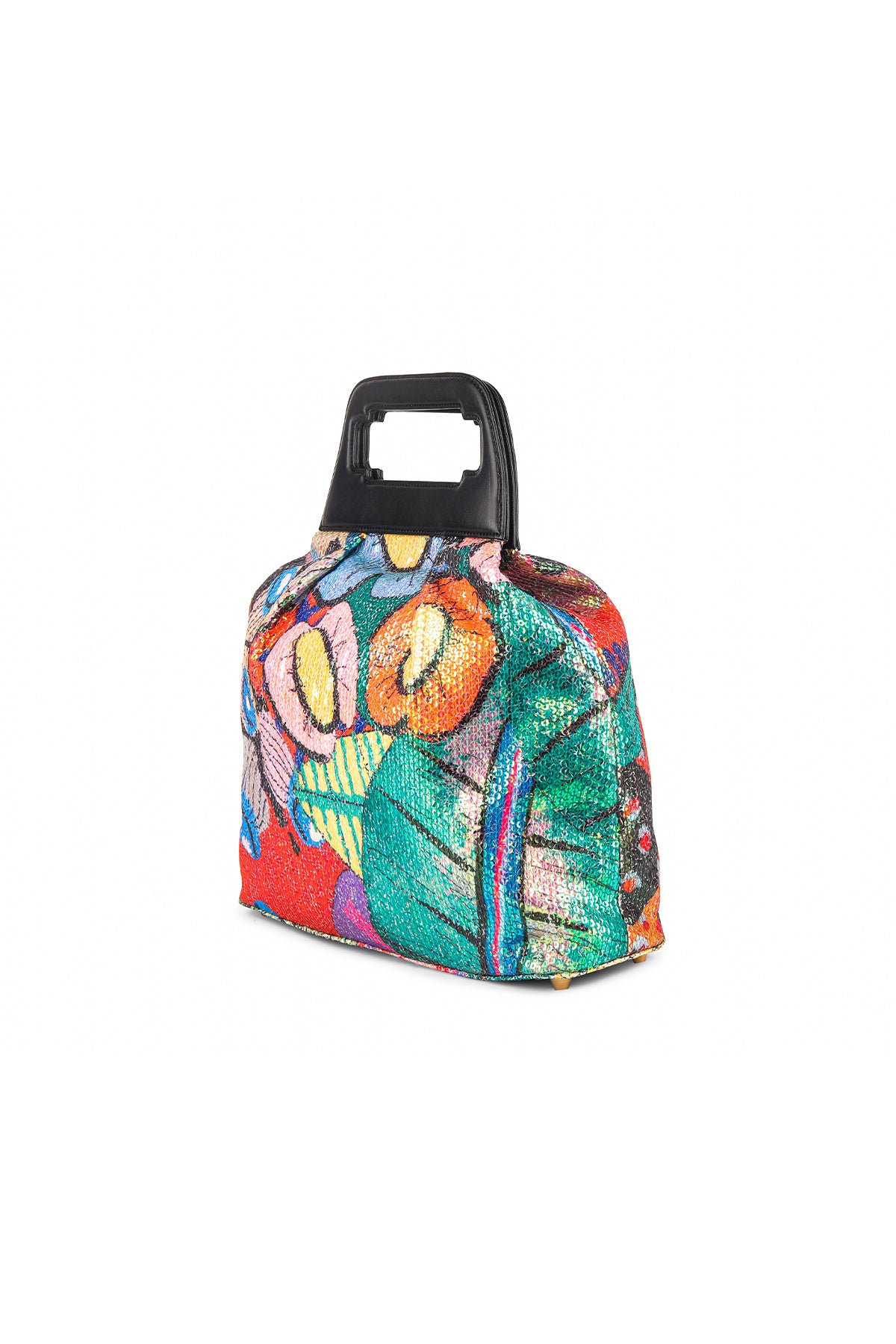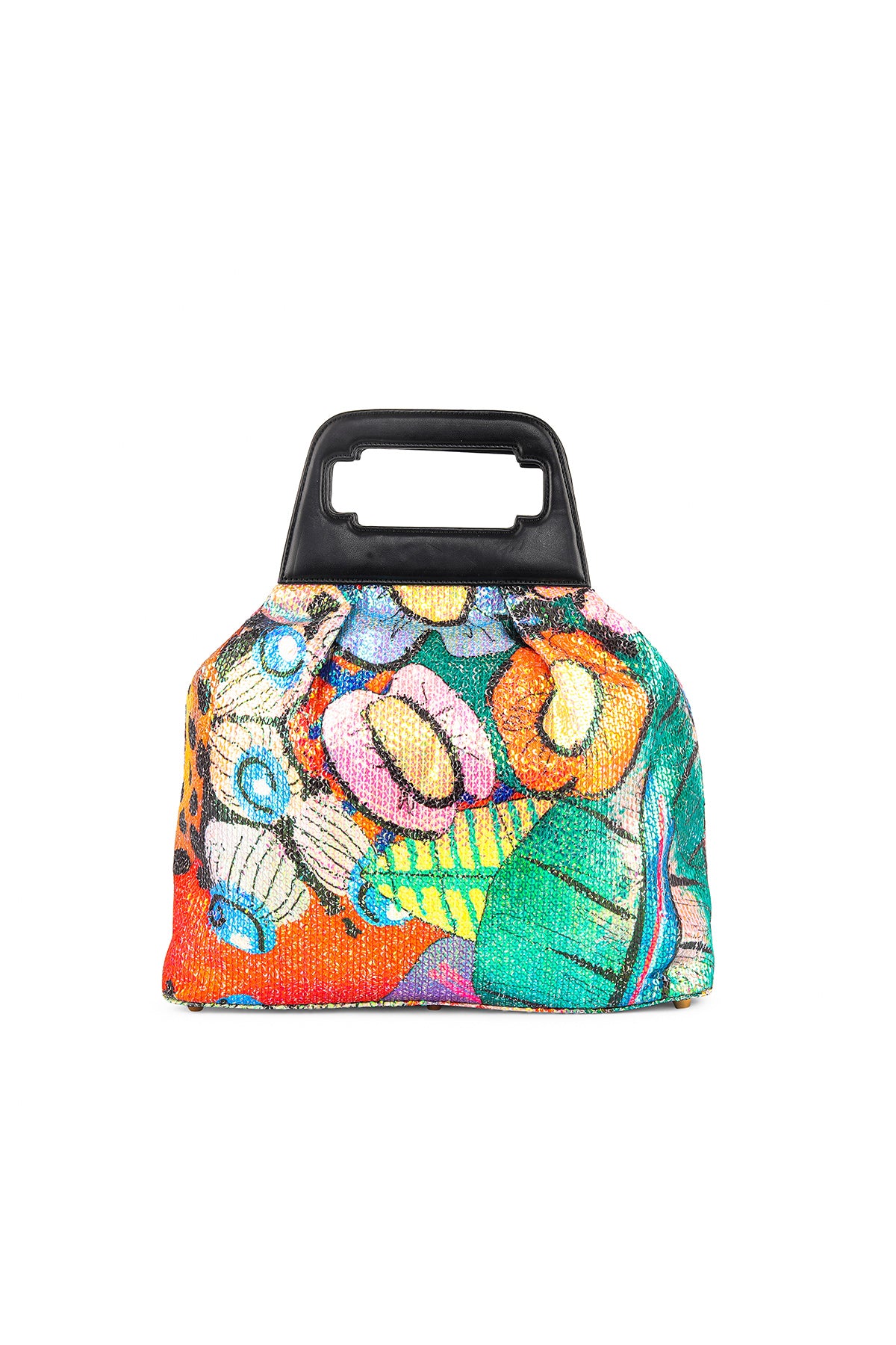 Kinfolk multicolor printed sequin tulle gathered duffel bag with black rexin handle