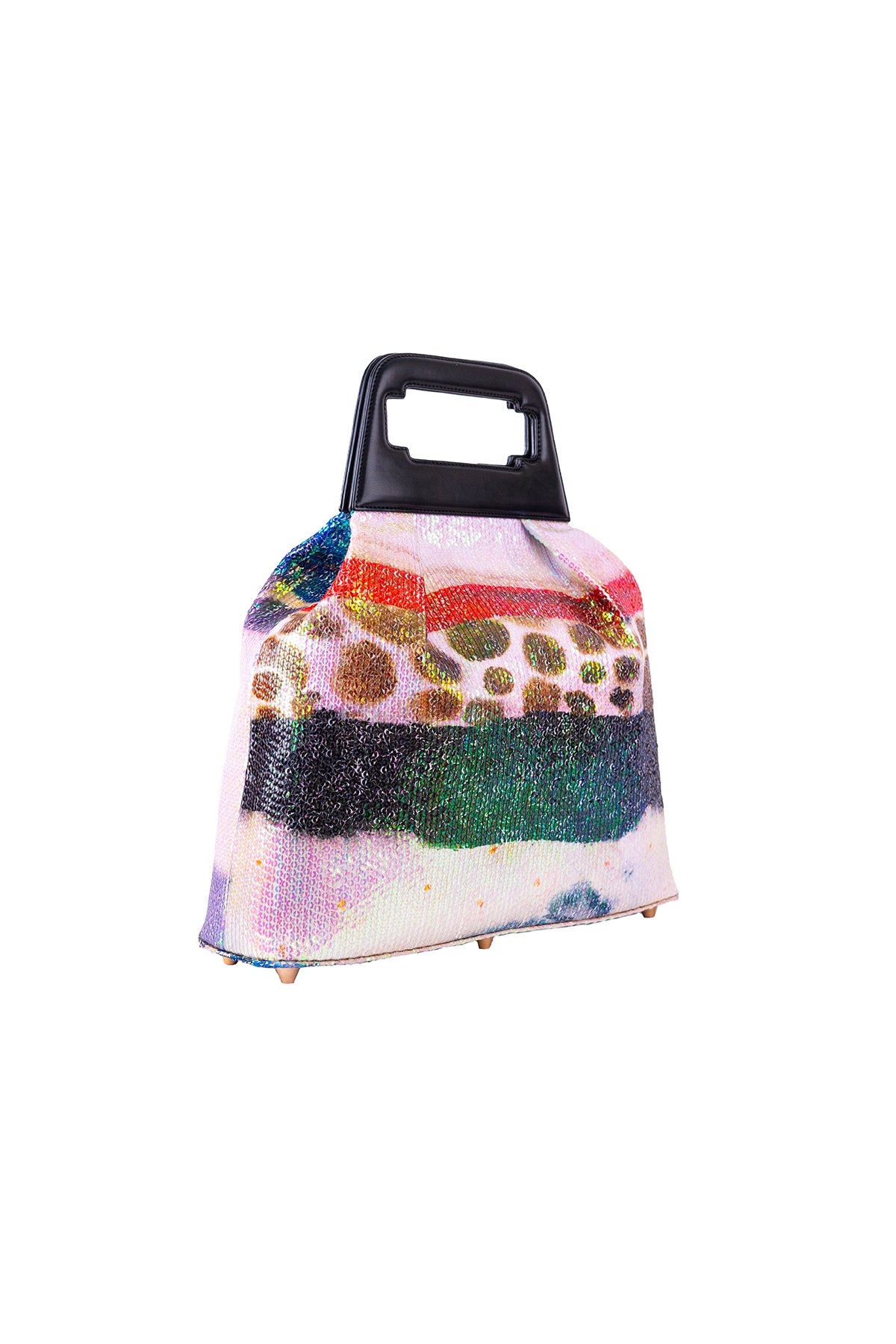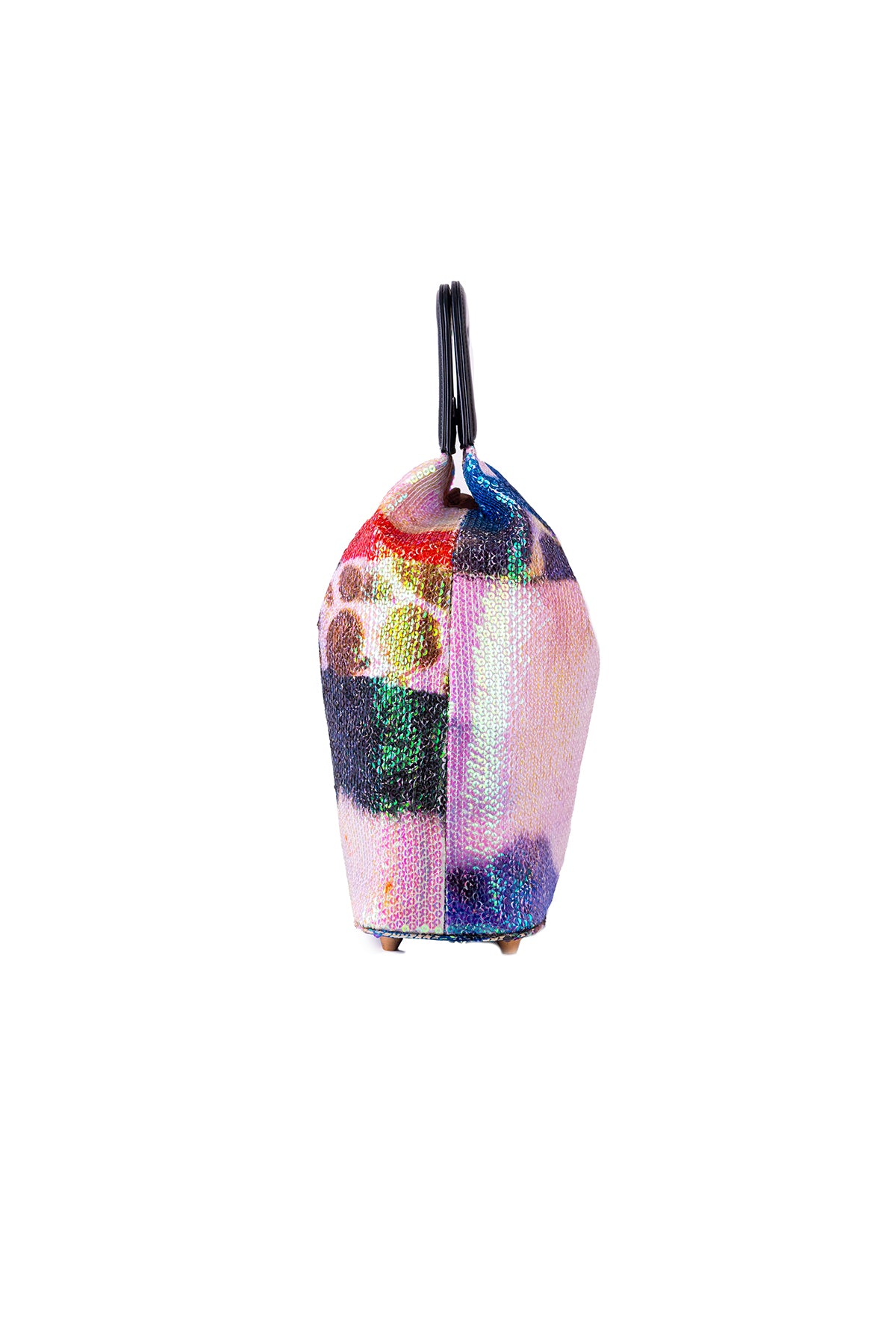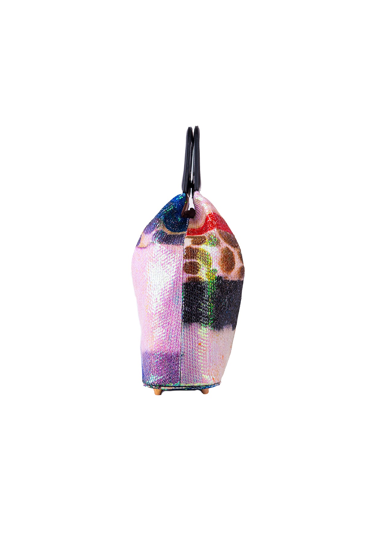 Kinfolk mist purple printed sequin tulle gathered duffel bag with black rexin handle loop