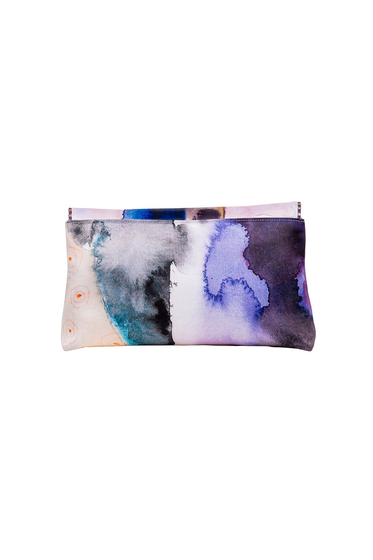 Kinfolk blue -pink printed embellised poly white out baguette bag