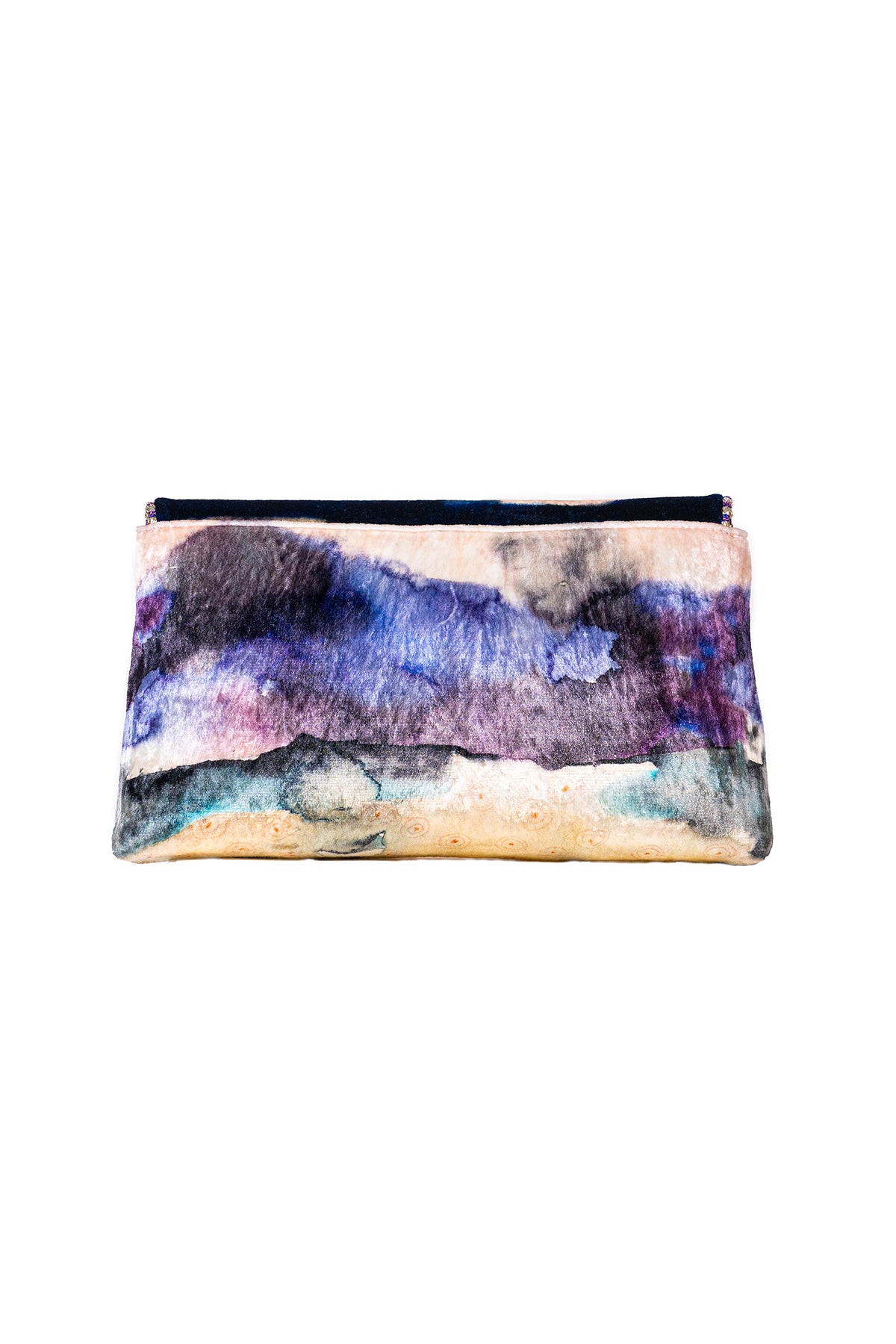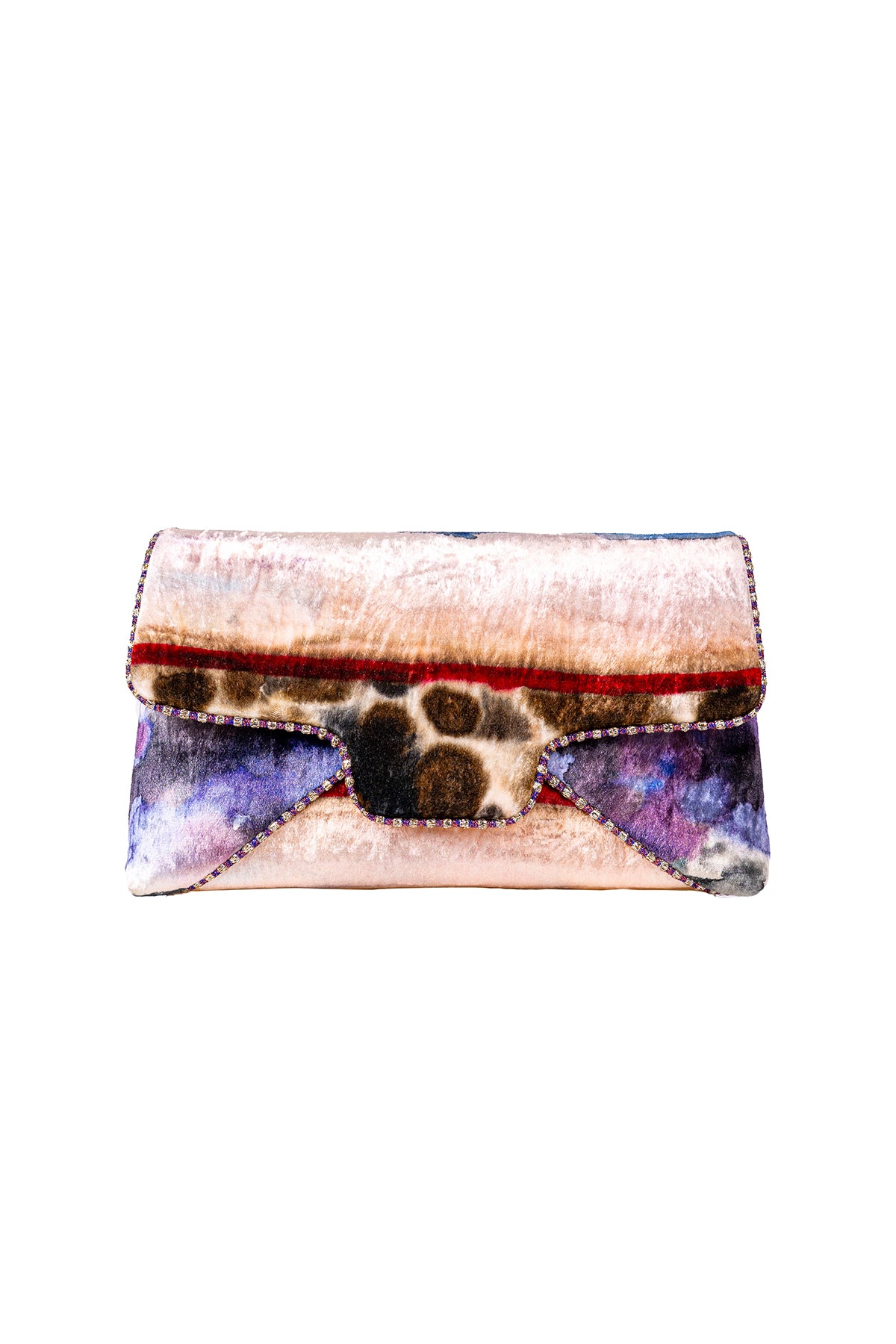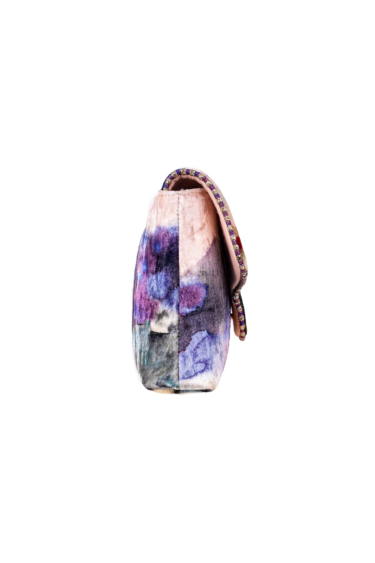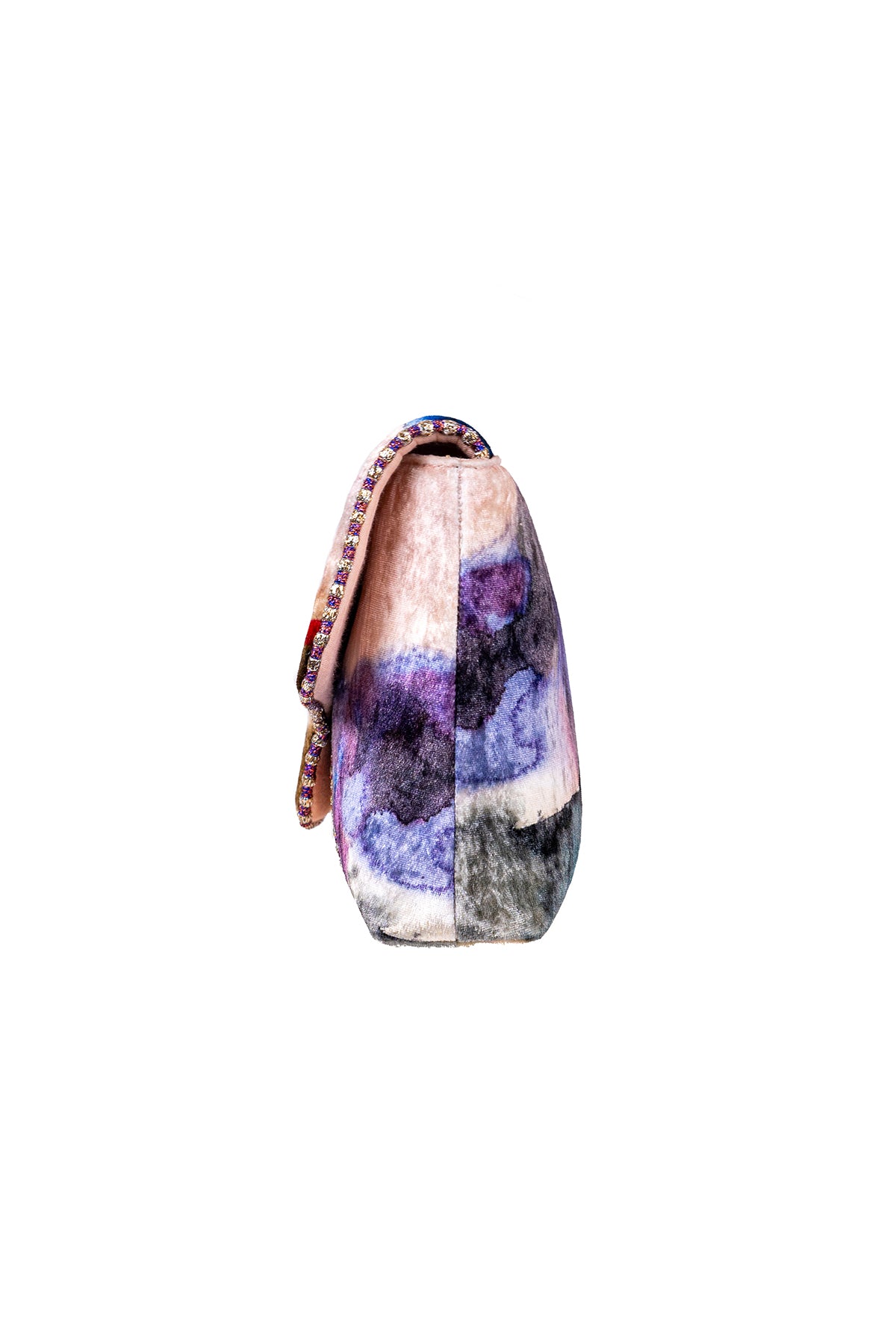 Kinfolk mist purple printed embellished velvet baguette bag