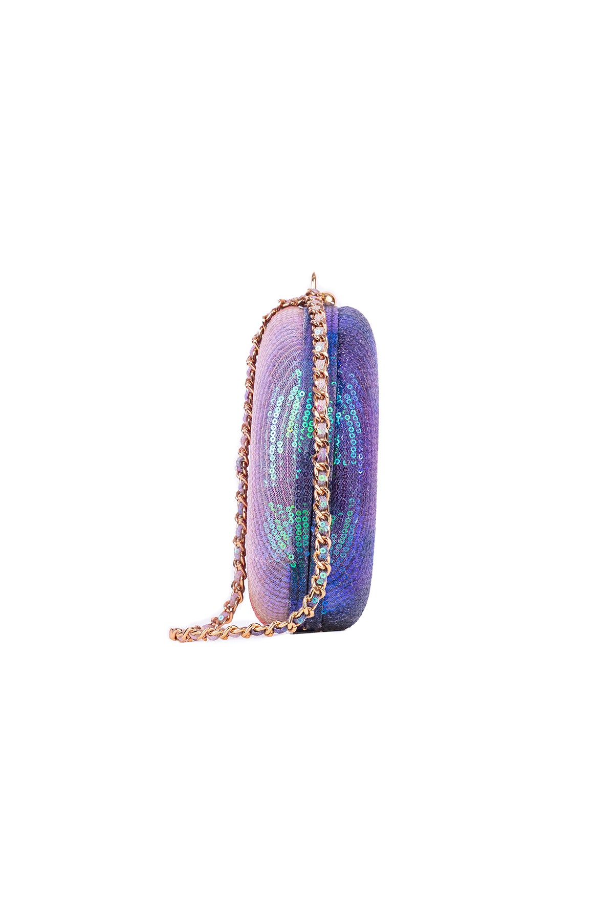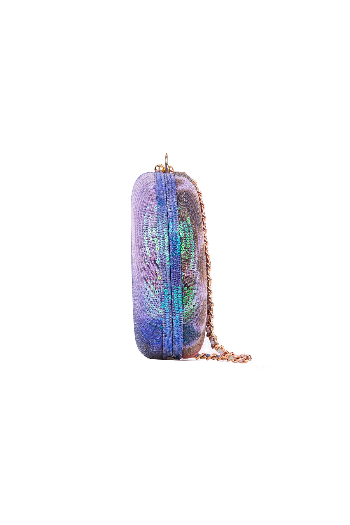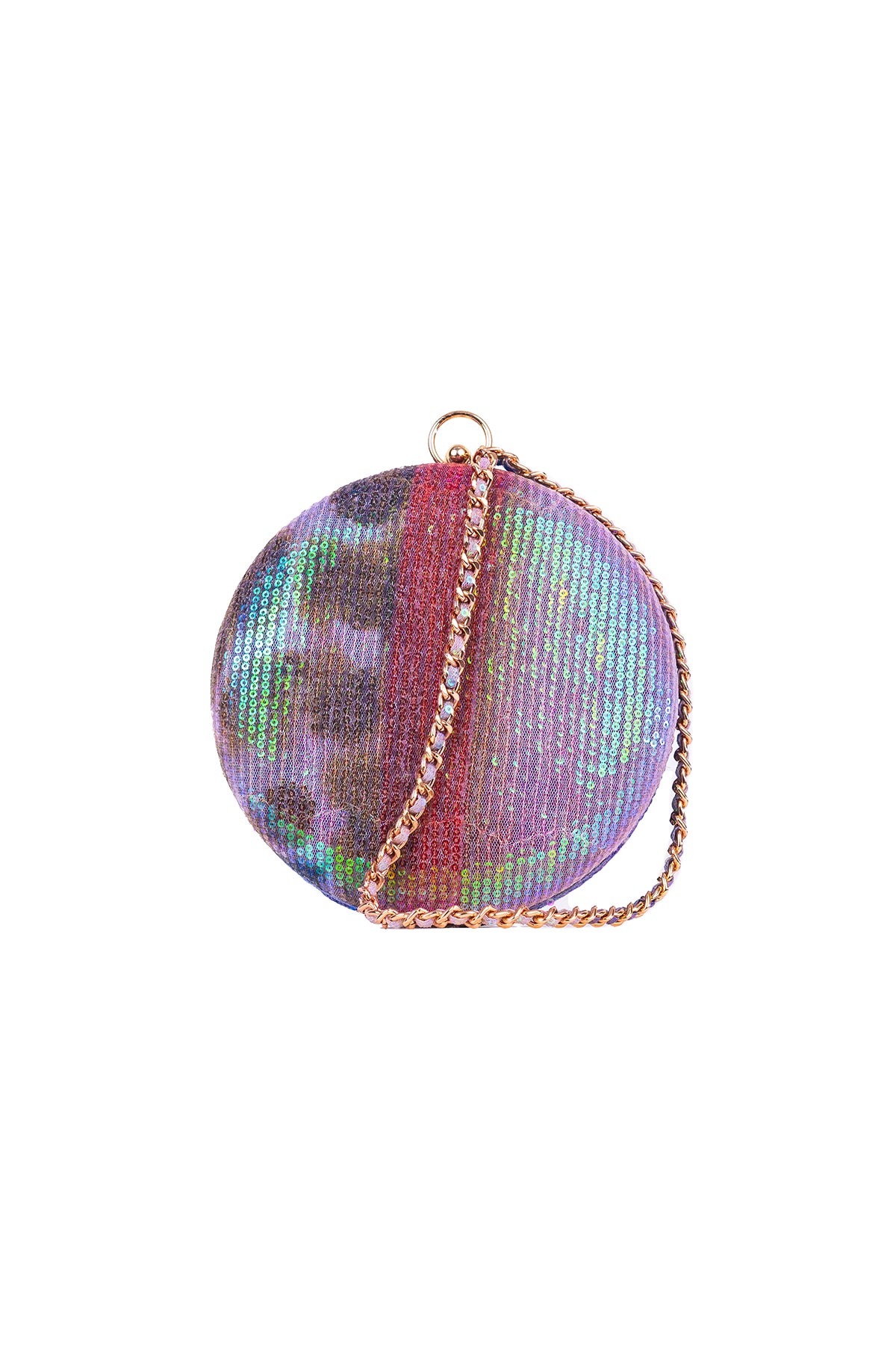 Kinfolk mist printed sequin tulle circle bag with gold chain