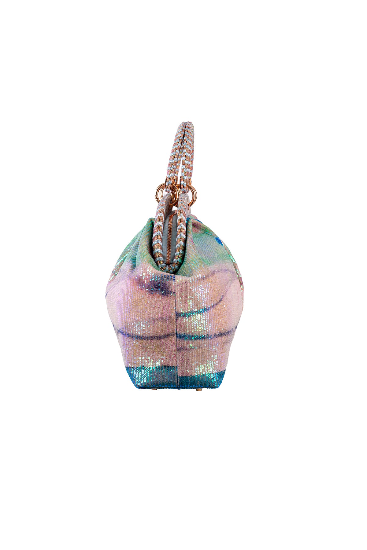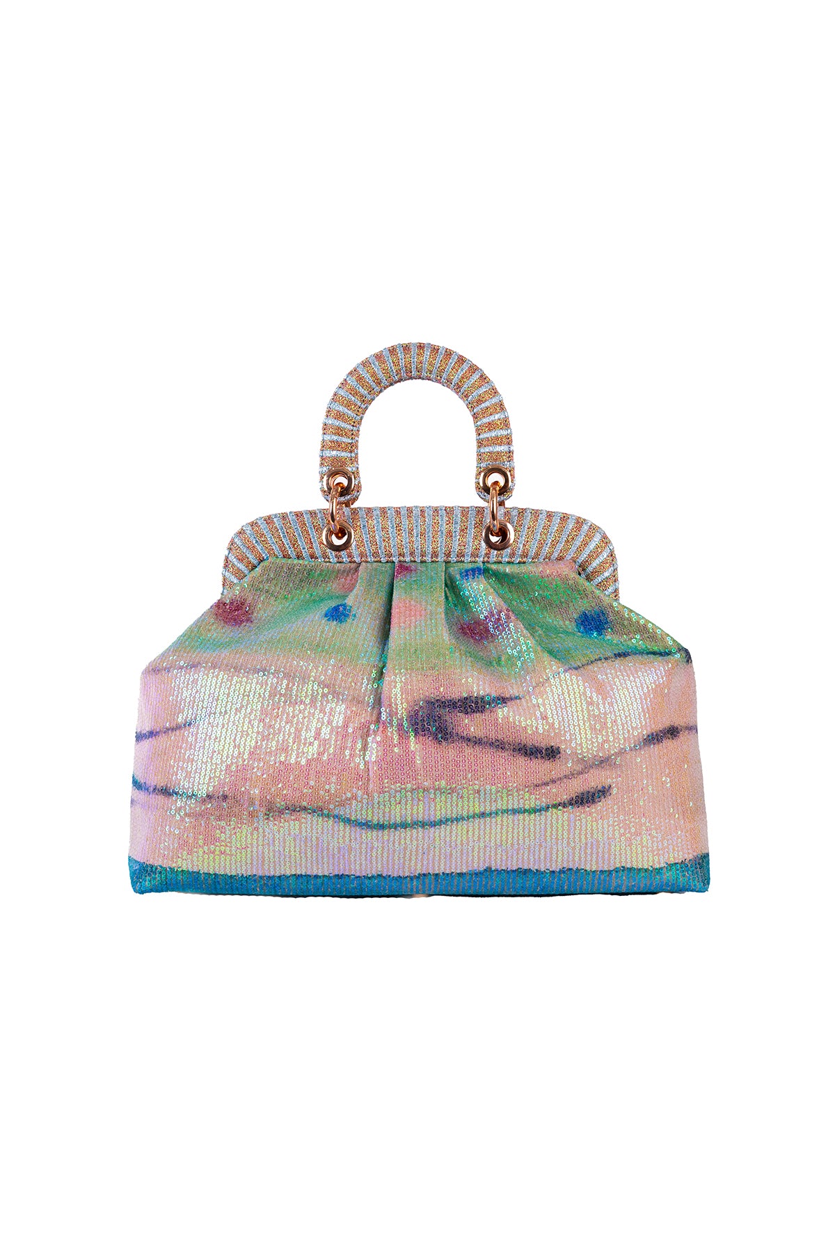Kinfolk aurora printed sequin tulle duffel bag with a small handle