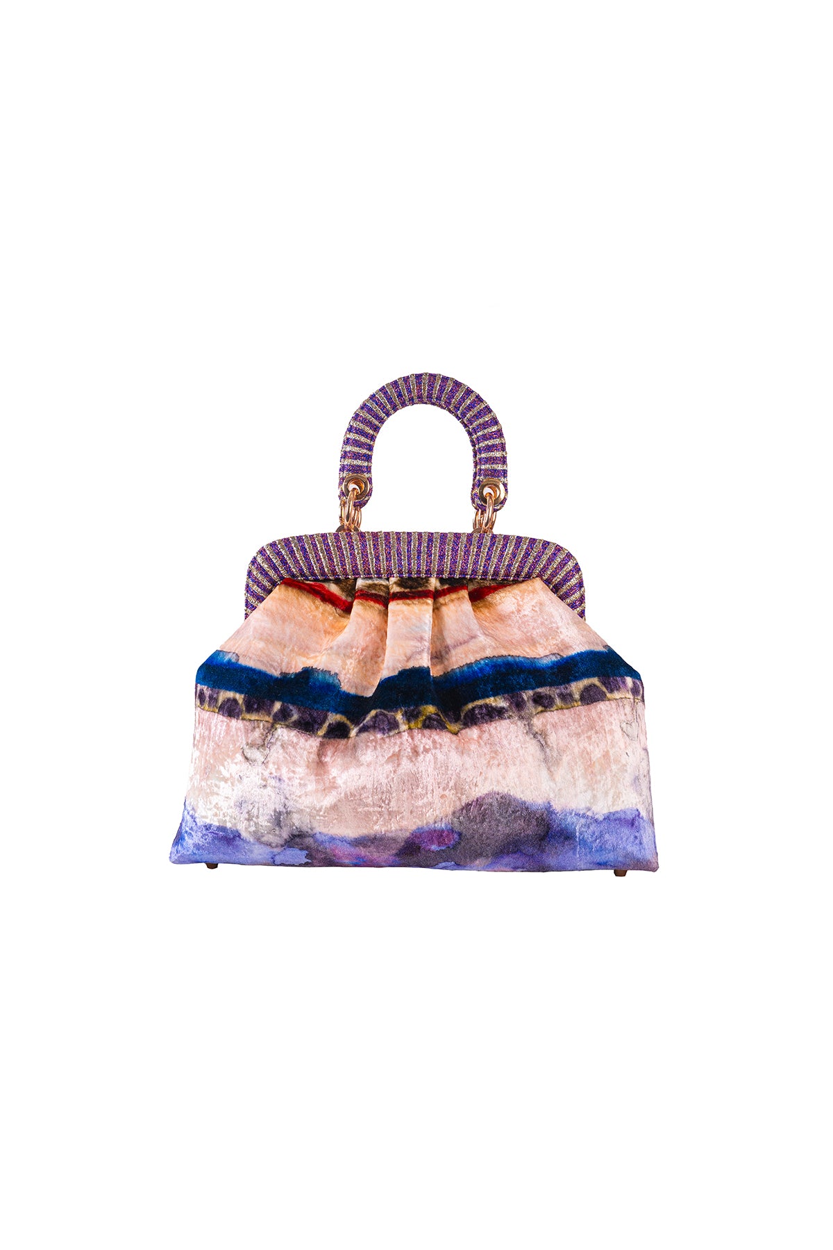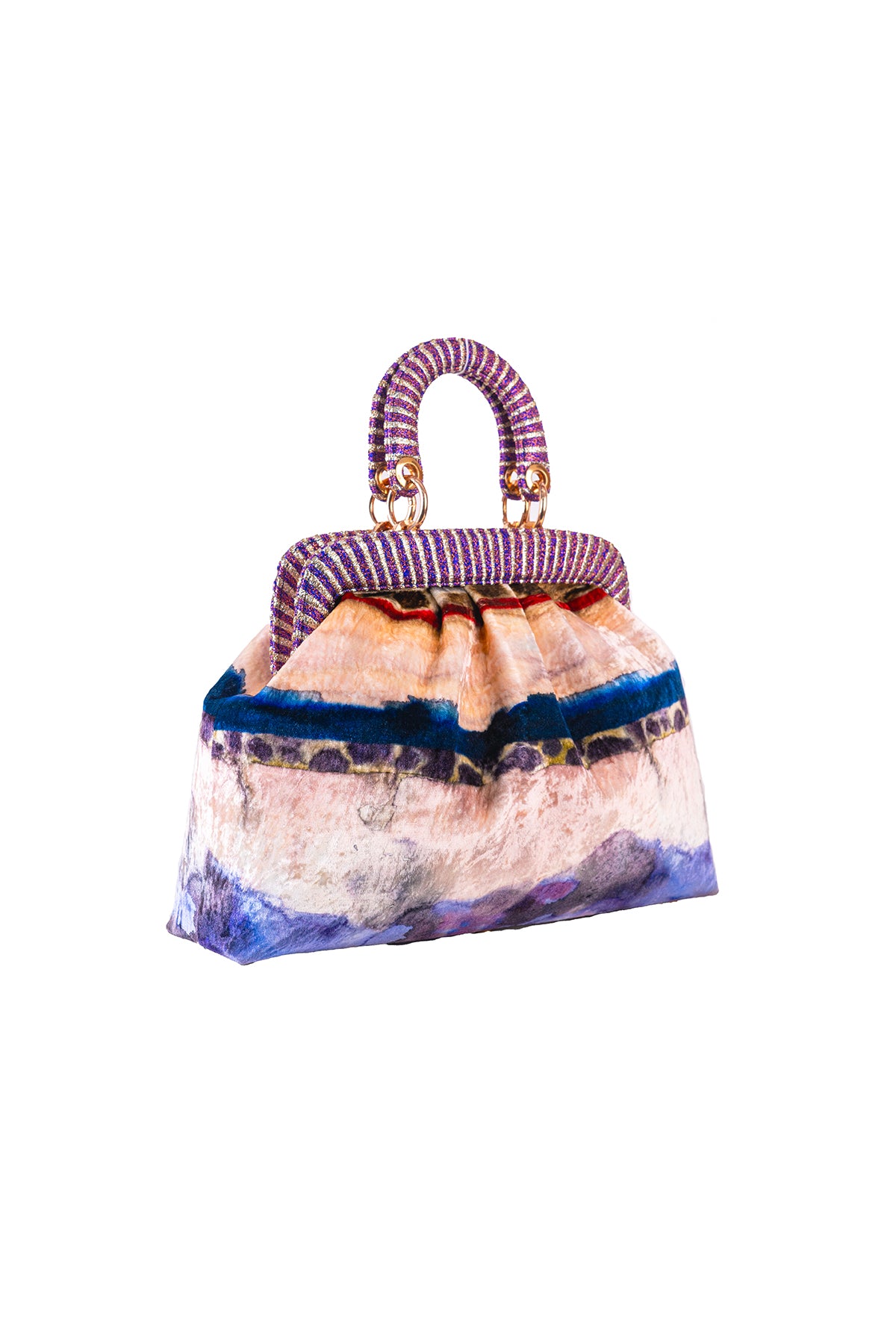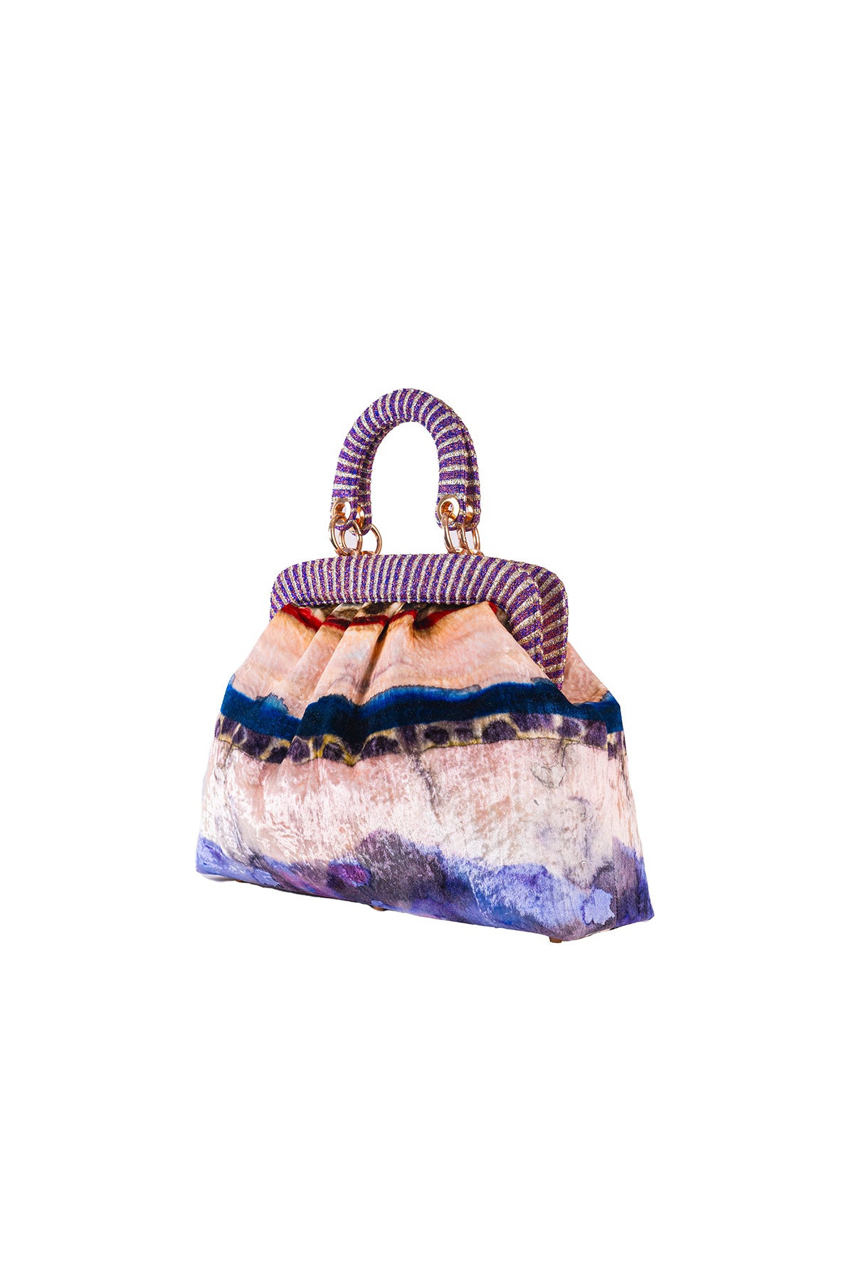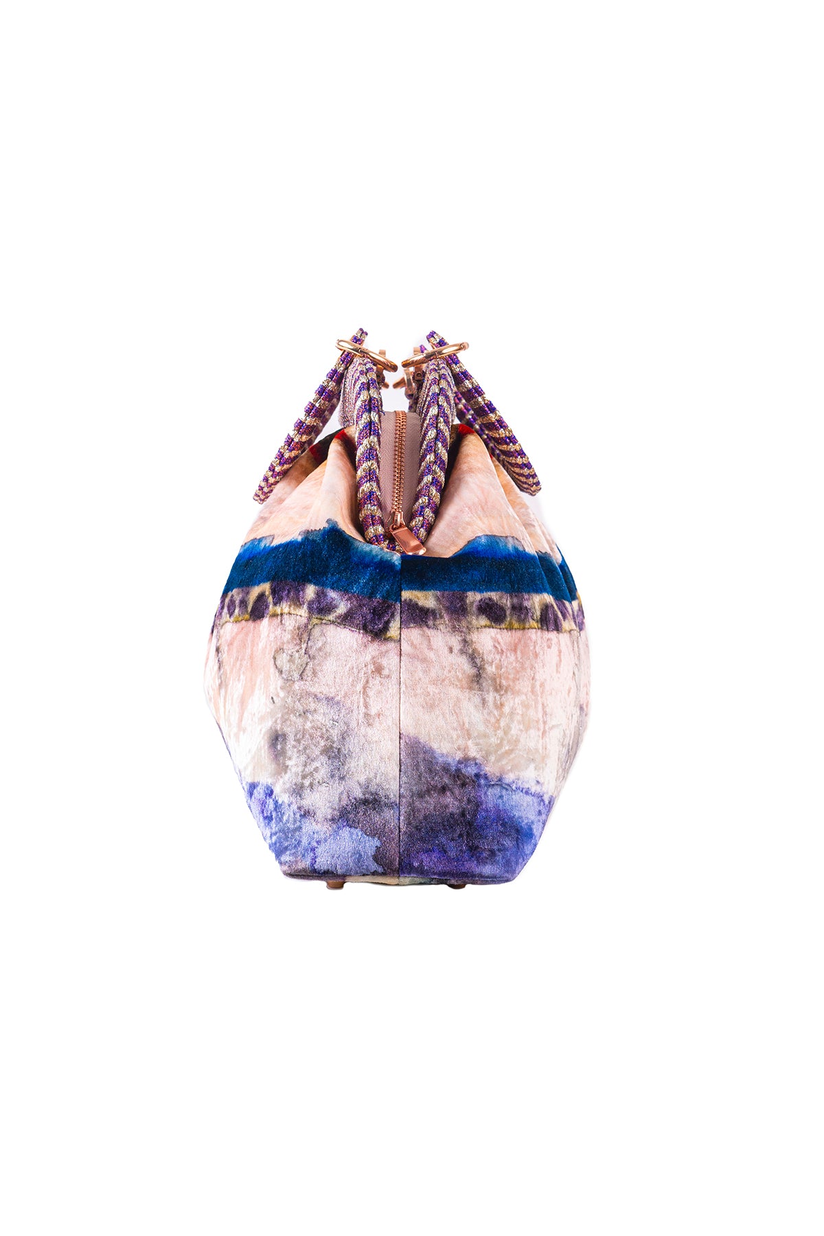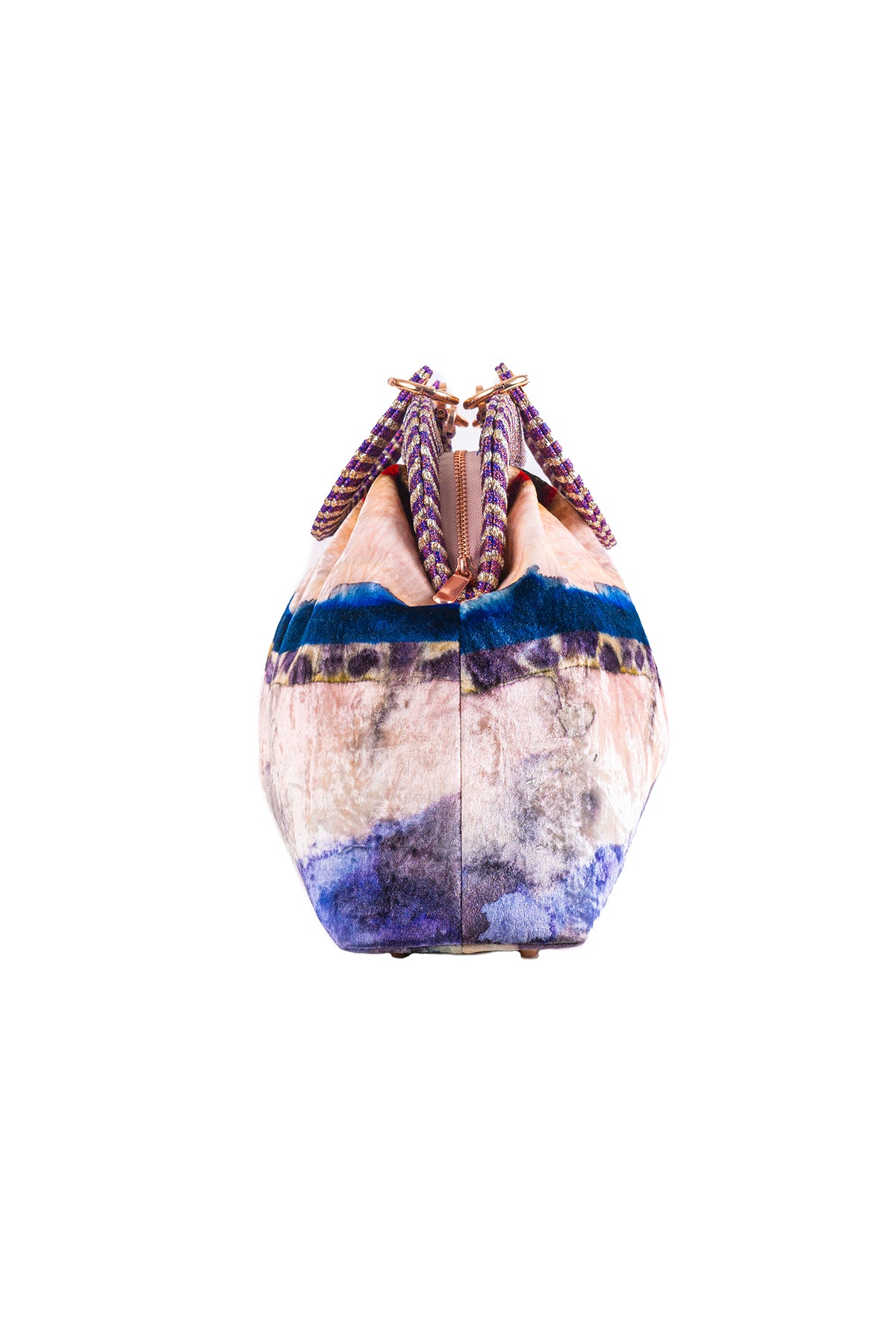 Kinfolk mist purple printed velvet duffel bag with small handle