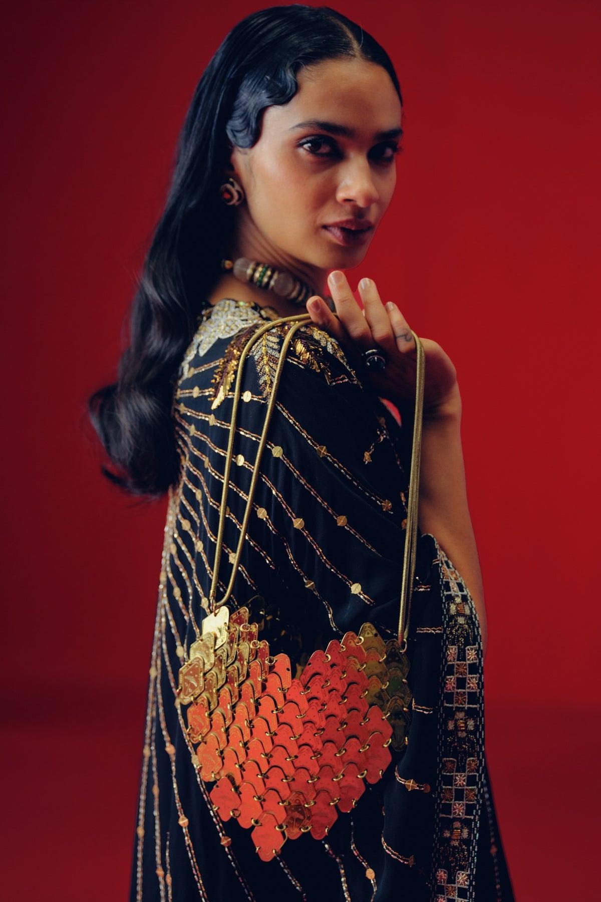 This piece by Aisha Rao is handcrafted using upcycled fabrics and artisan techniques. Variations in color, embroidery, and texture are intentional and reflect the handmade nature of the garment. These differences are a mark of its uniqueness and craftsmanship. No two pieces are exactly alike.