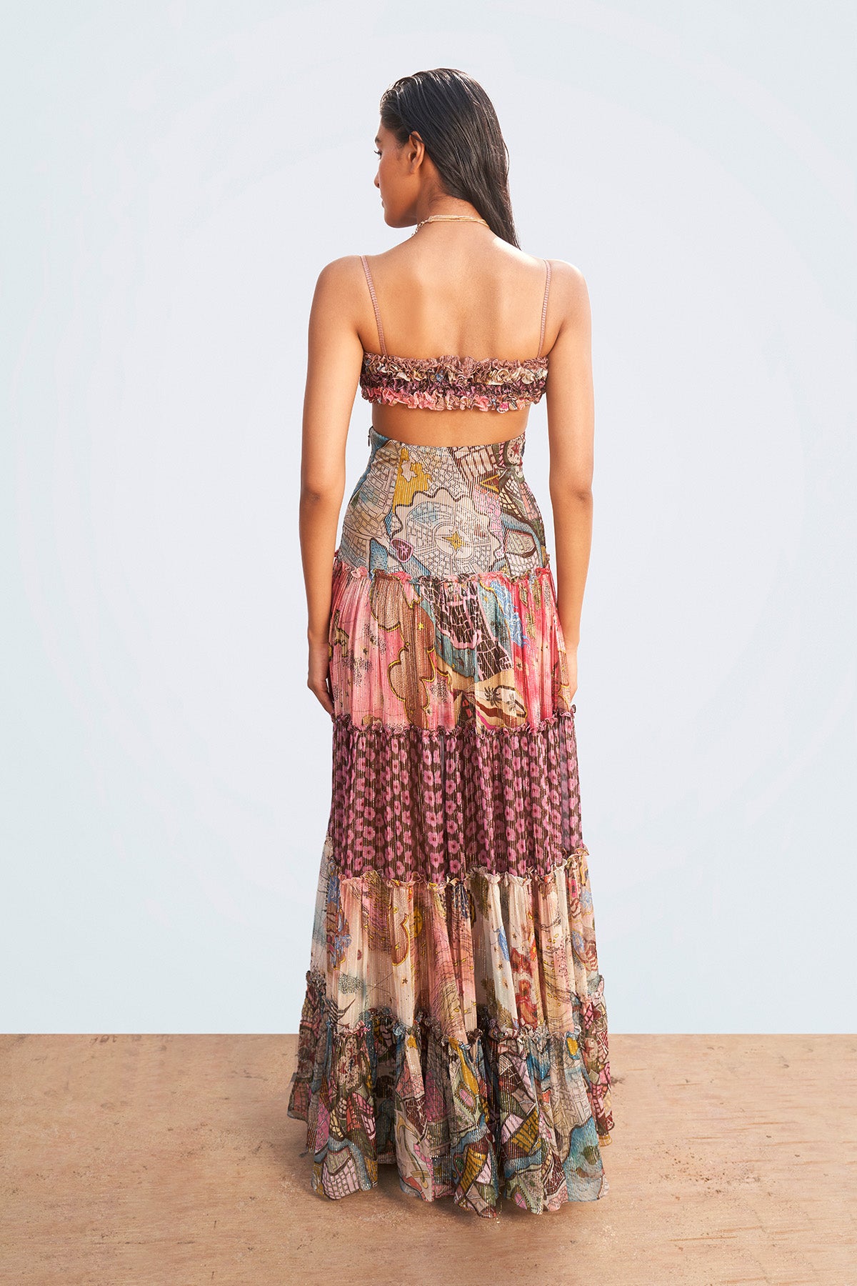 Starboard & Port printed maxi dress with ruffle trims details on the bodice.