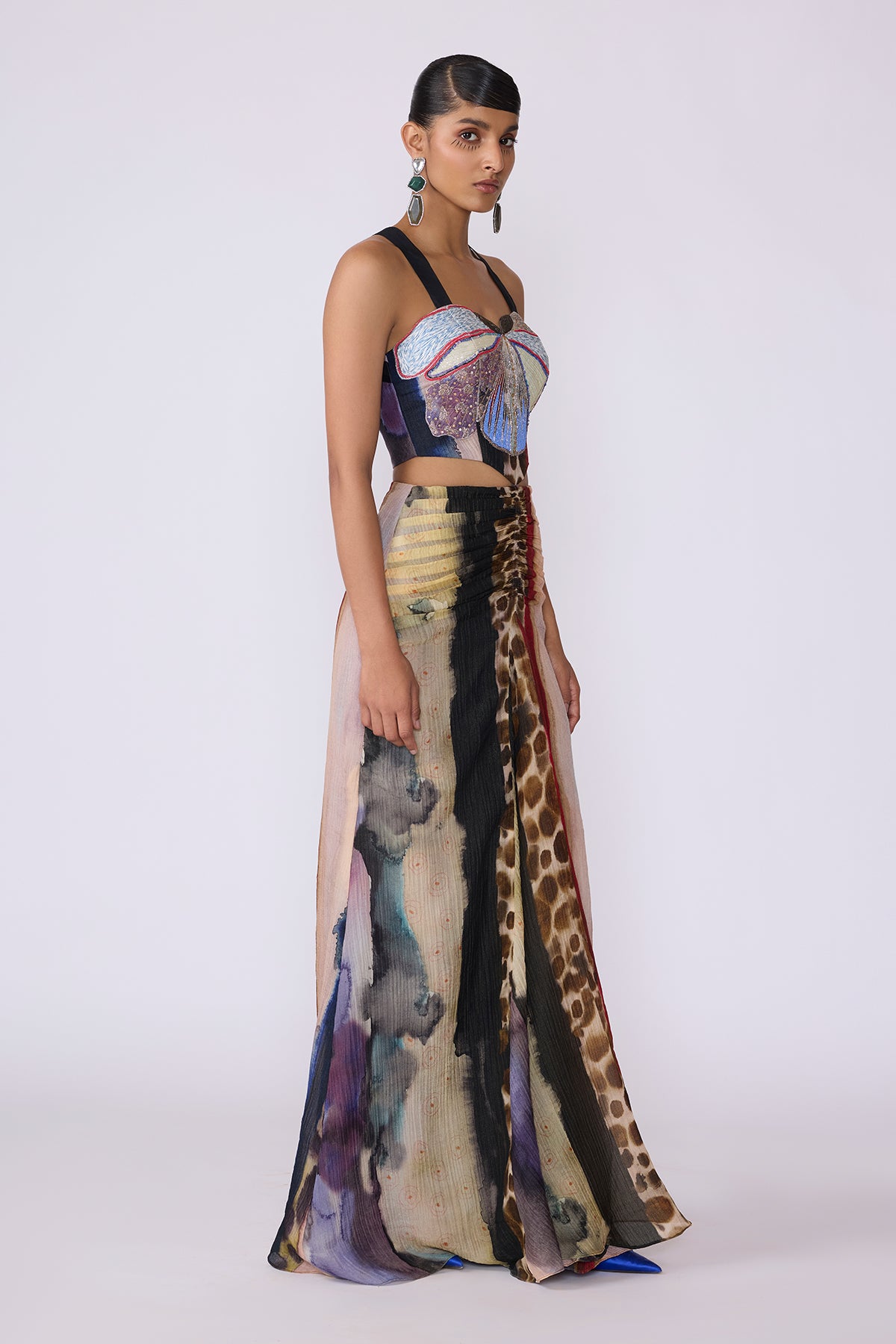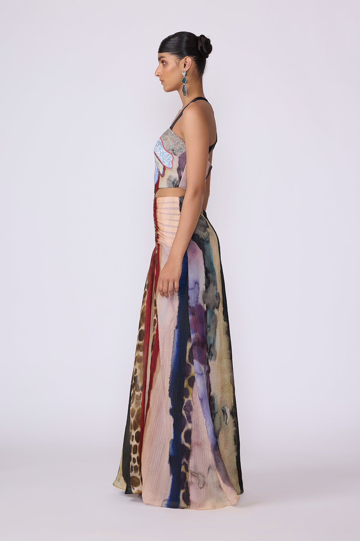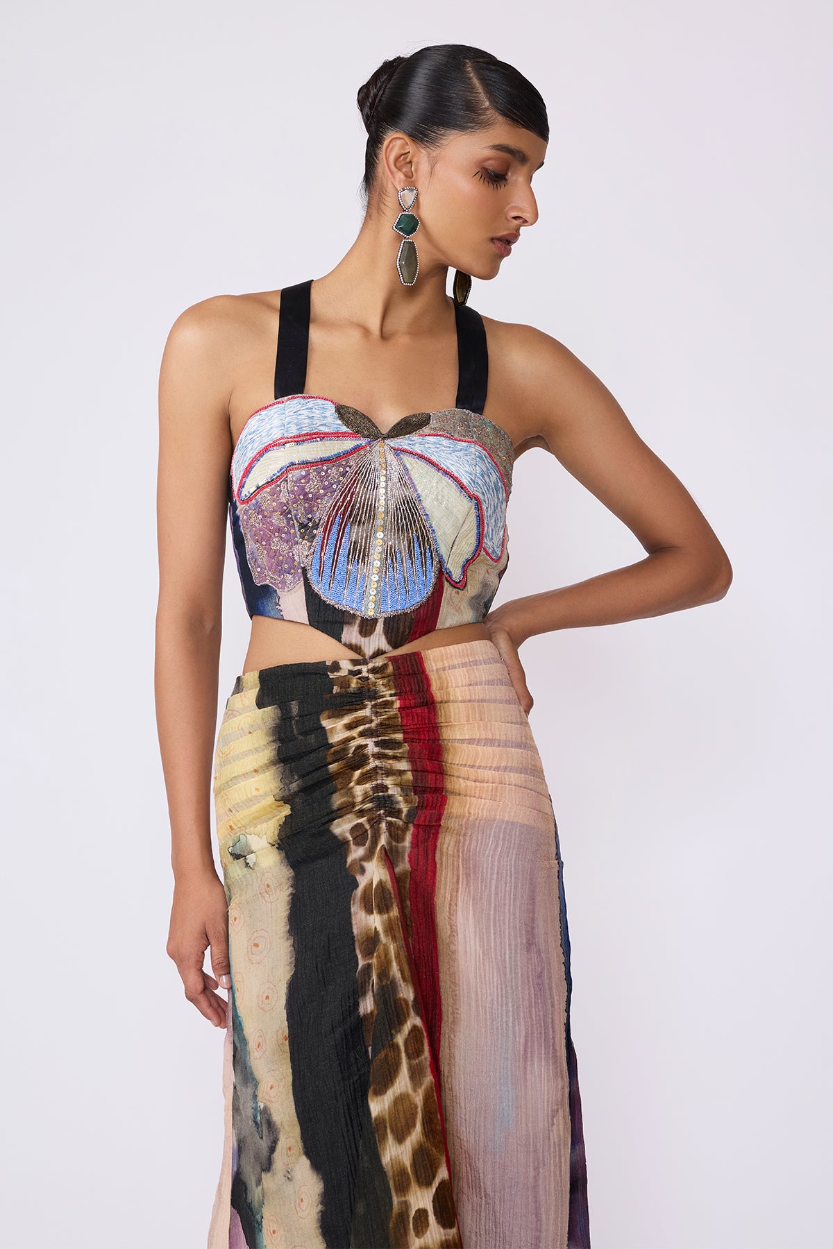 This piece by Aisha Rao is handcrafted using upcycled fabrics and artisan techniques. Variations in color, embroidery, print placement, print color, and texture are intentional and reflect the handmade nature of the garment. These differences are a mark of its uniqueness and craftsmanship. No two pieces are exactly alike.