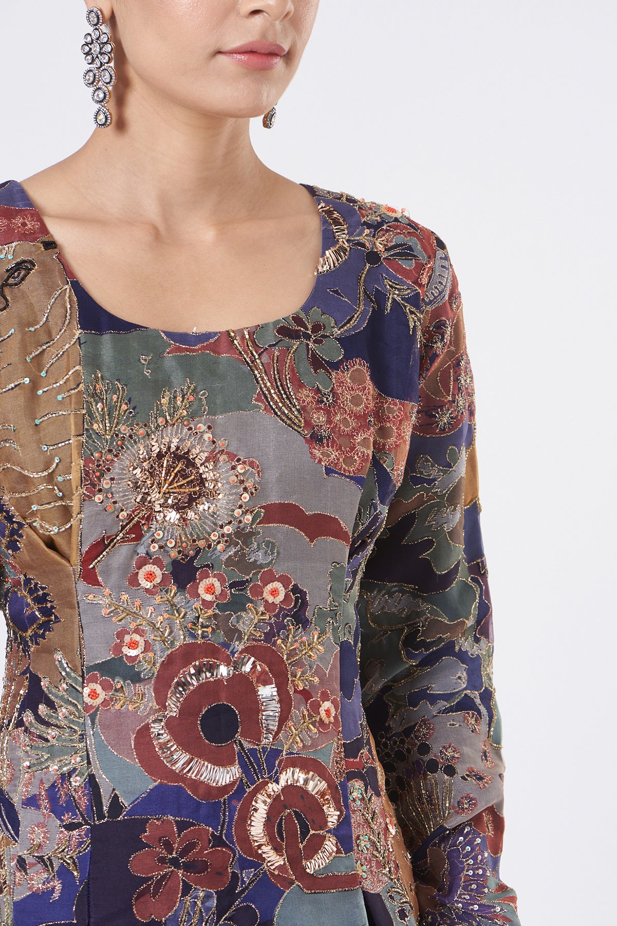 This piece by Aisha Rao is handcrafted using upcycled fabrics and artisan techniques. Variations in color, embroidery, print placement, print color, and texture are intentional and reflect the handmade nature of the garment. These differences are a mark of its uniqueness and craftsmanship. No two pieces are exactly alike.
