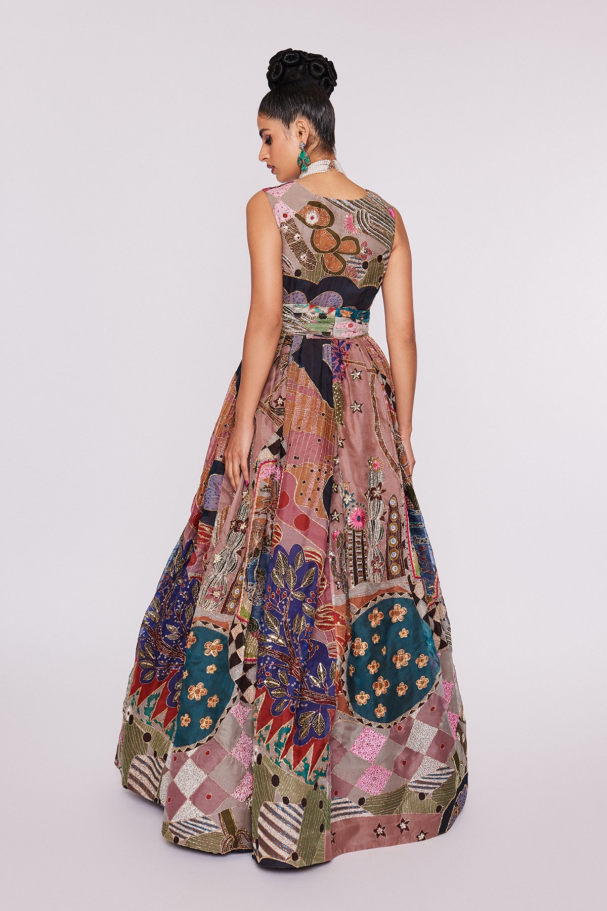 This piece by Aisha Rao is handcrafted using upcycled fabrics and artisan techniques. Variations in color, embroidery, print placement, print color, and texture are intentional and reflect the handmade nature of the garment. These differences are a mark of its uniqueness and craftsmanship. No two pieces are exactly alike.