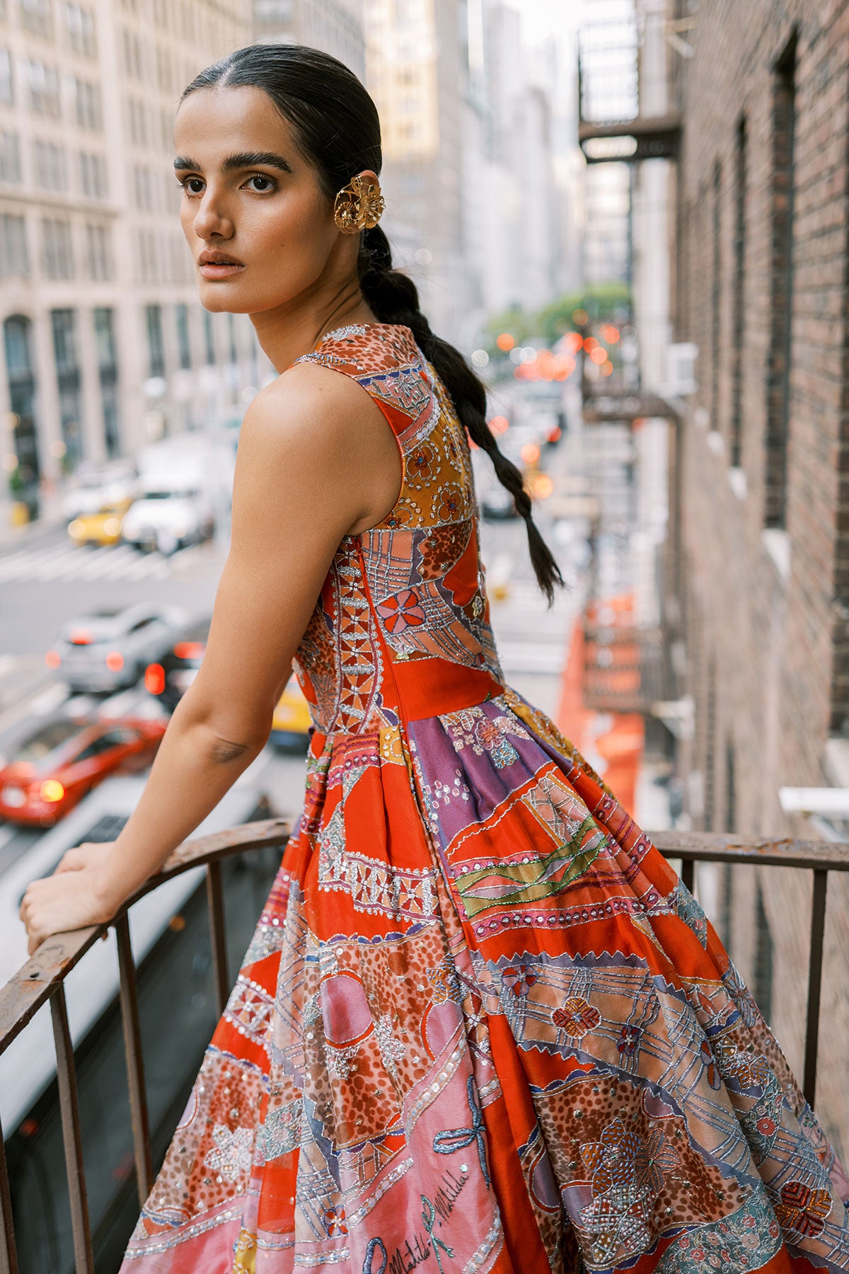 This piece by Aisha Rao is handcrafted using upcycled fabrics and artisan techniques. Variations in color, embroidery, print placement, print color, and texture are intentional and reflect the handmade nature of the garment. These differences are a mark of its uniqueness and craftsmanship. No two pieces are exactly alike.