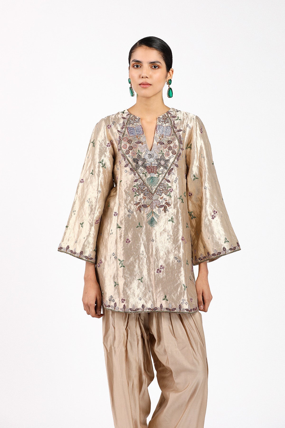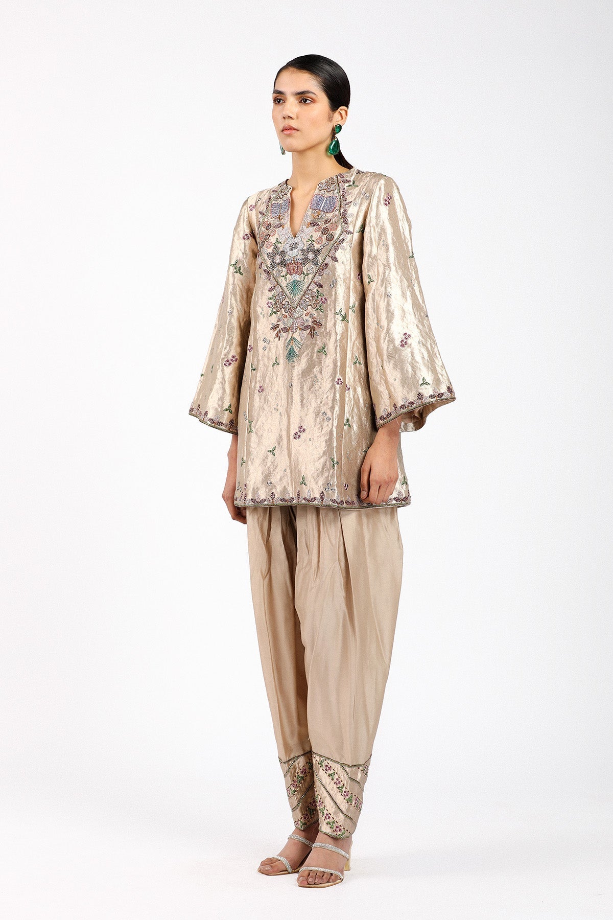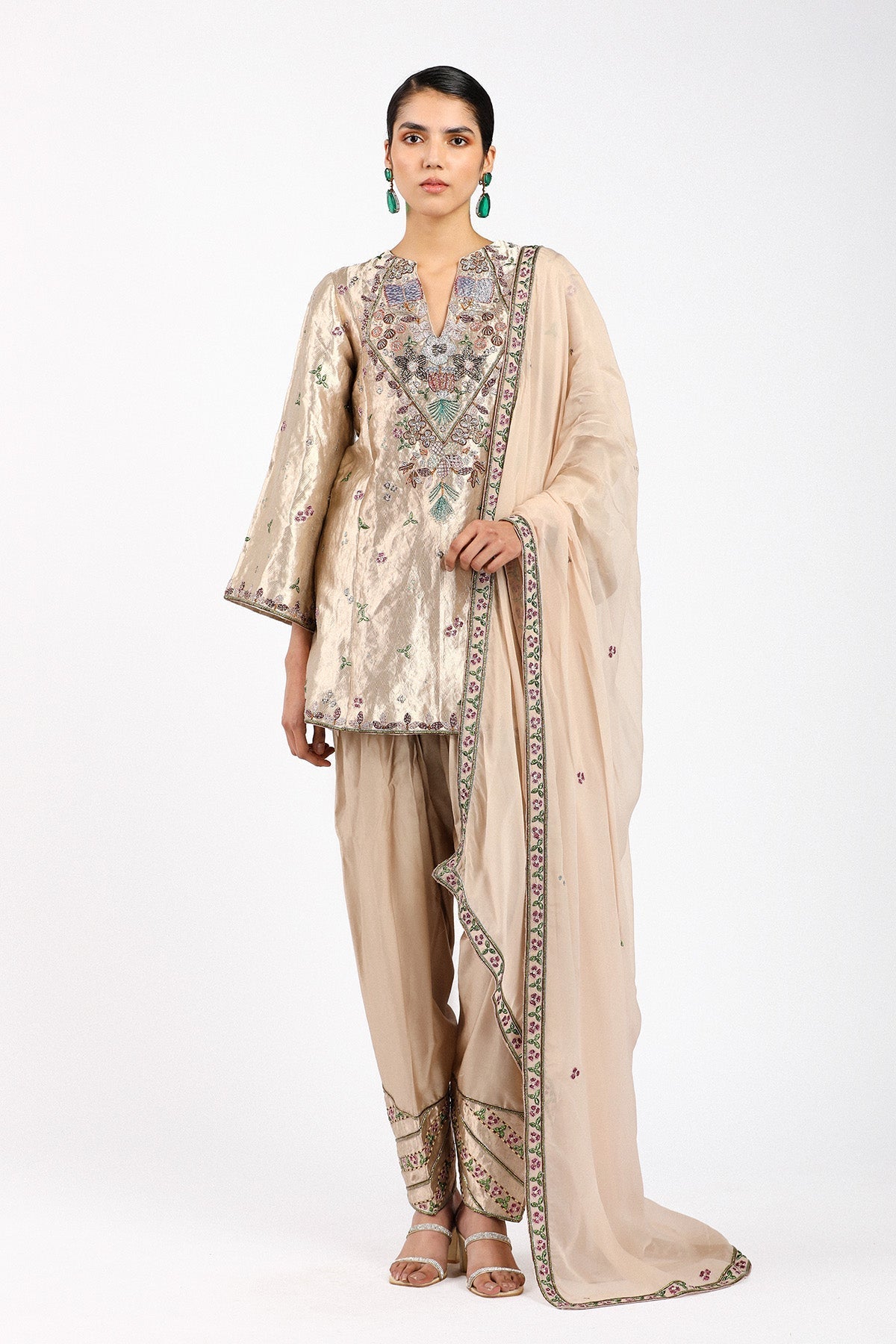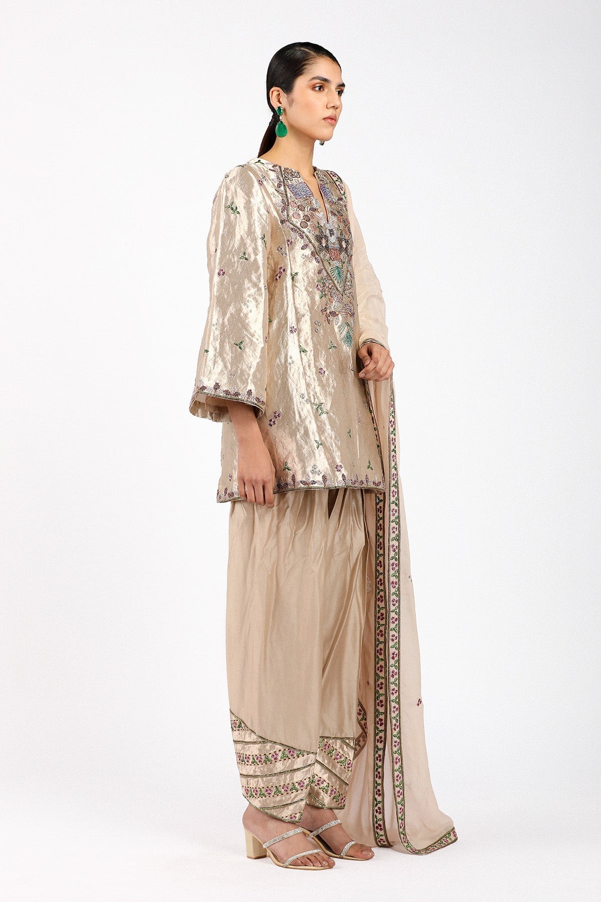 Matilda Desert applique embellished Banarasi tissue brocade kurta with chanderi silk patiyala pants and organza dupatta