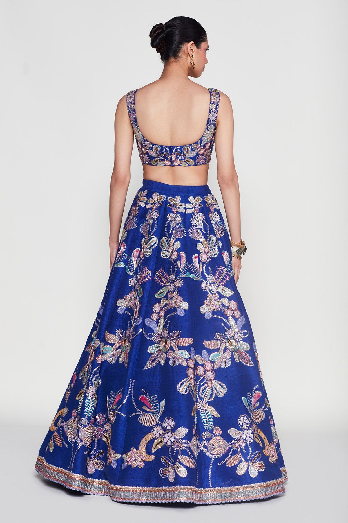 Back view of Kinfolk electric blue lehenga, blouse & dupatta