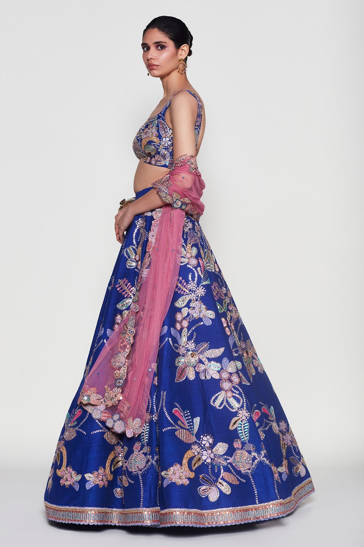 Kinfolk VB electric blue lehenga set – right side silhouette