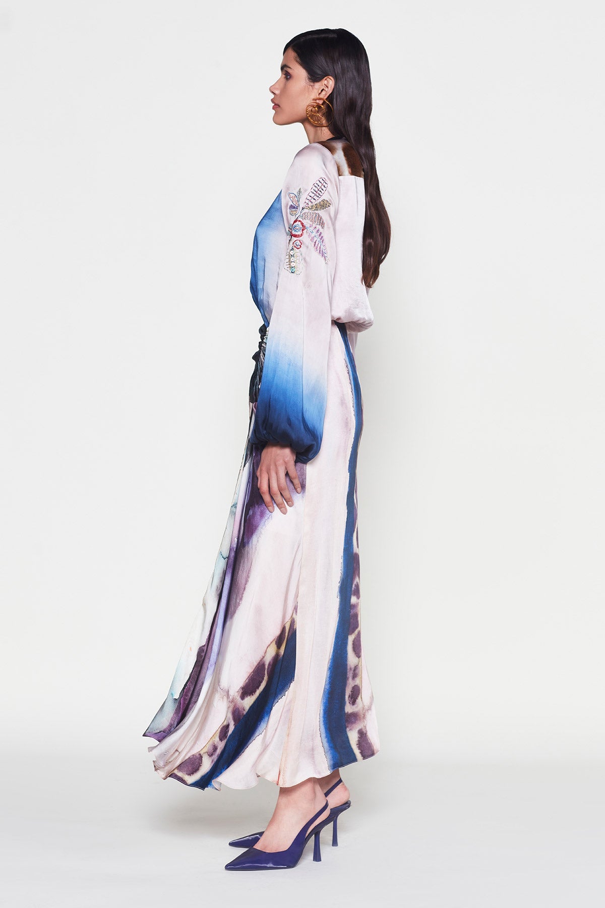 Kinfolk printed silky satin full sleeve dress – side profile