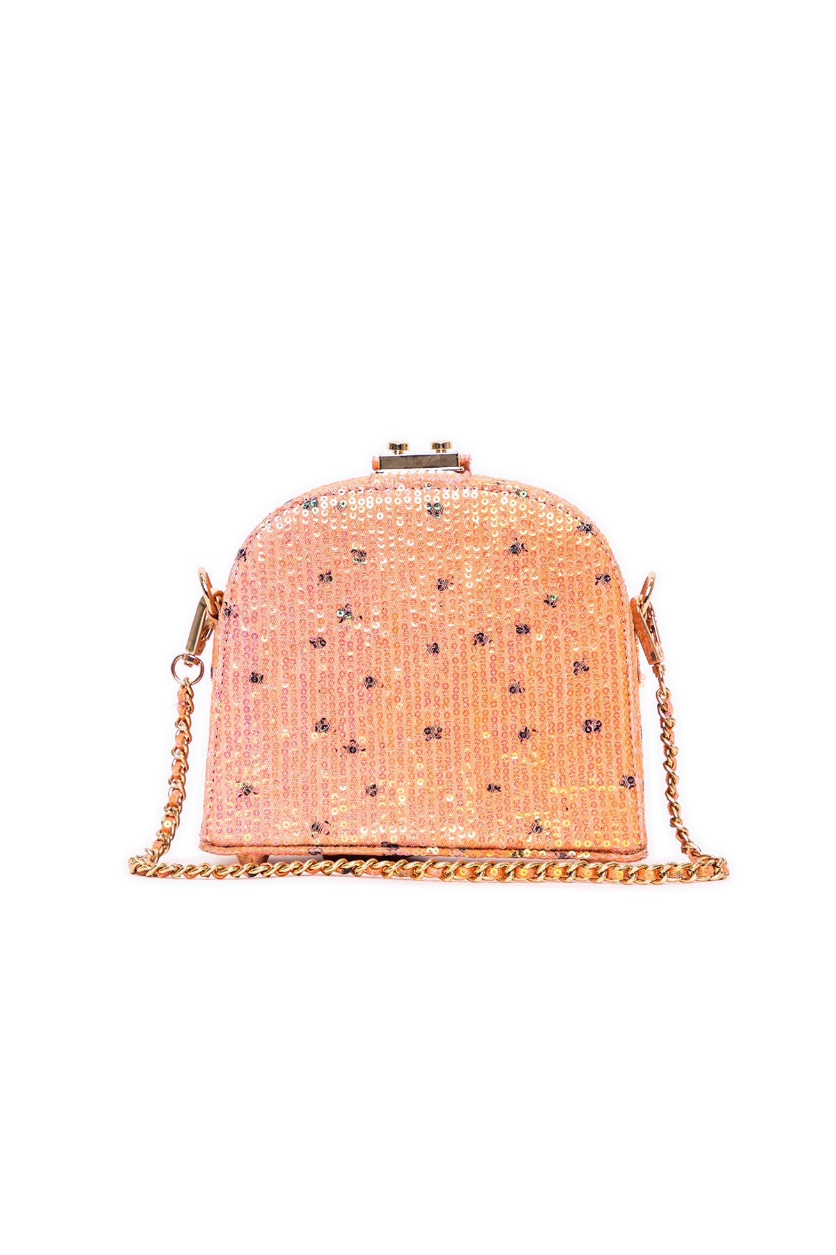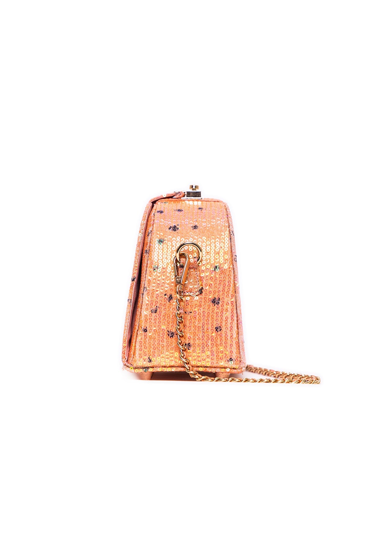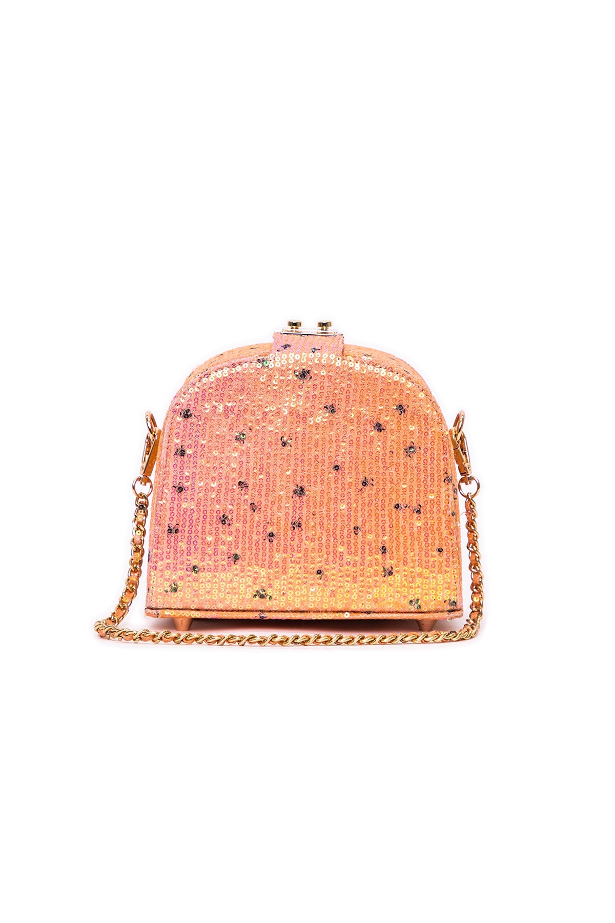 kinfolk pink- tangerine printed sequin tulle dome bag with gold chain