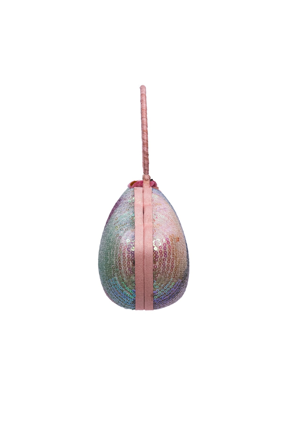 Sequin printed lip minaudiere side profile right view