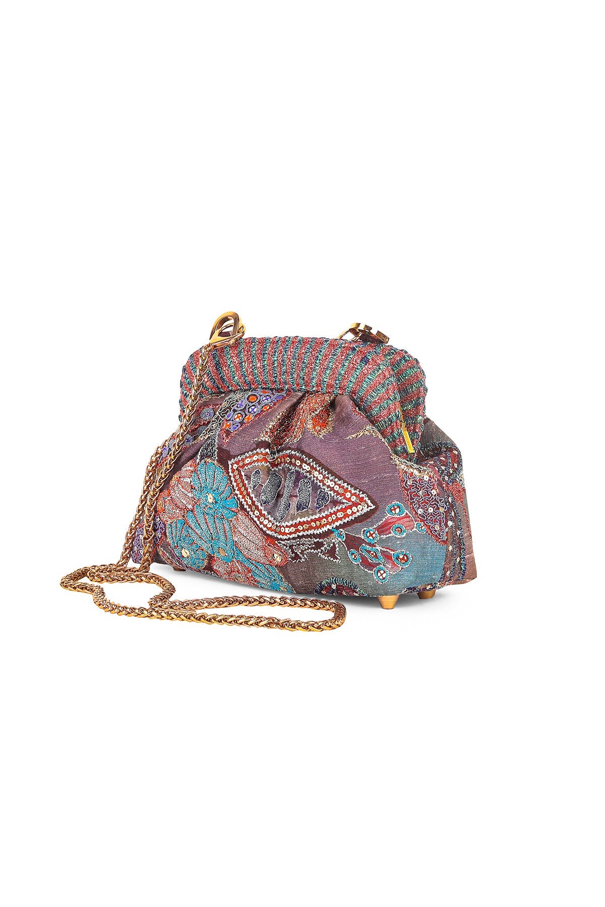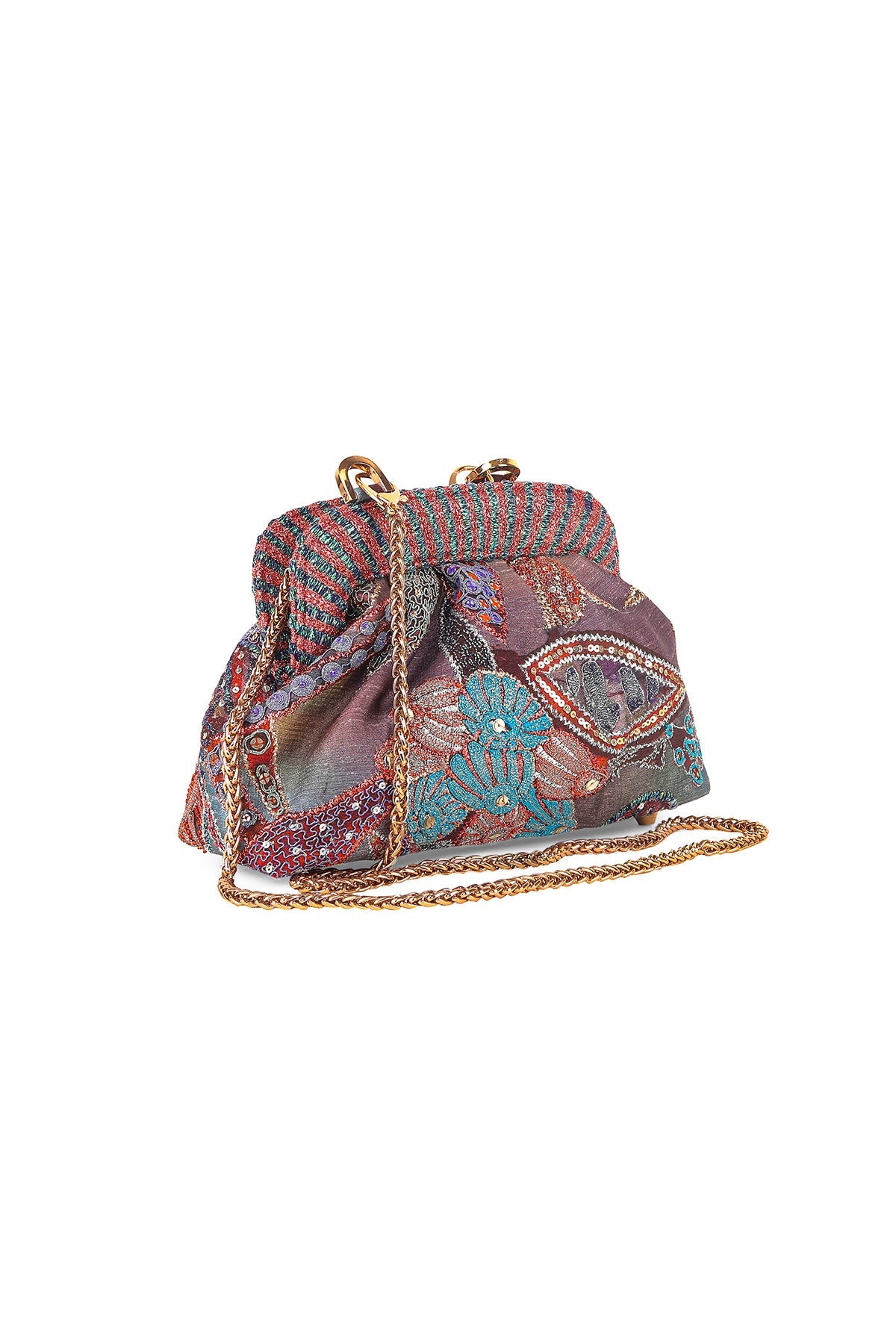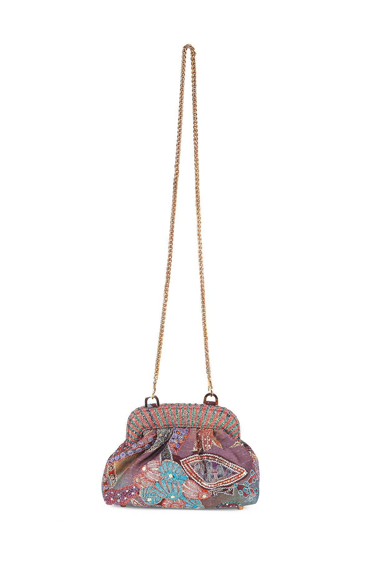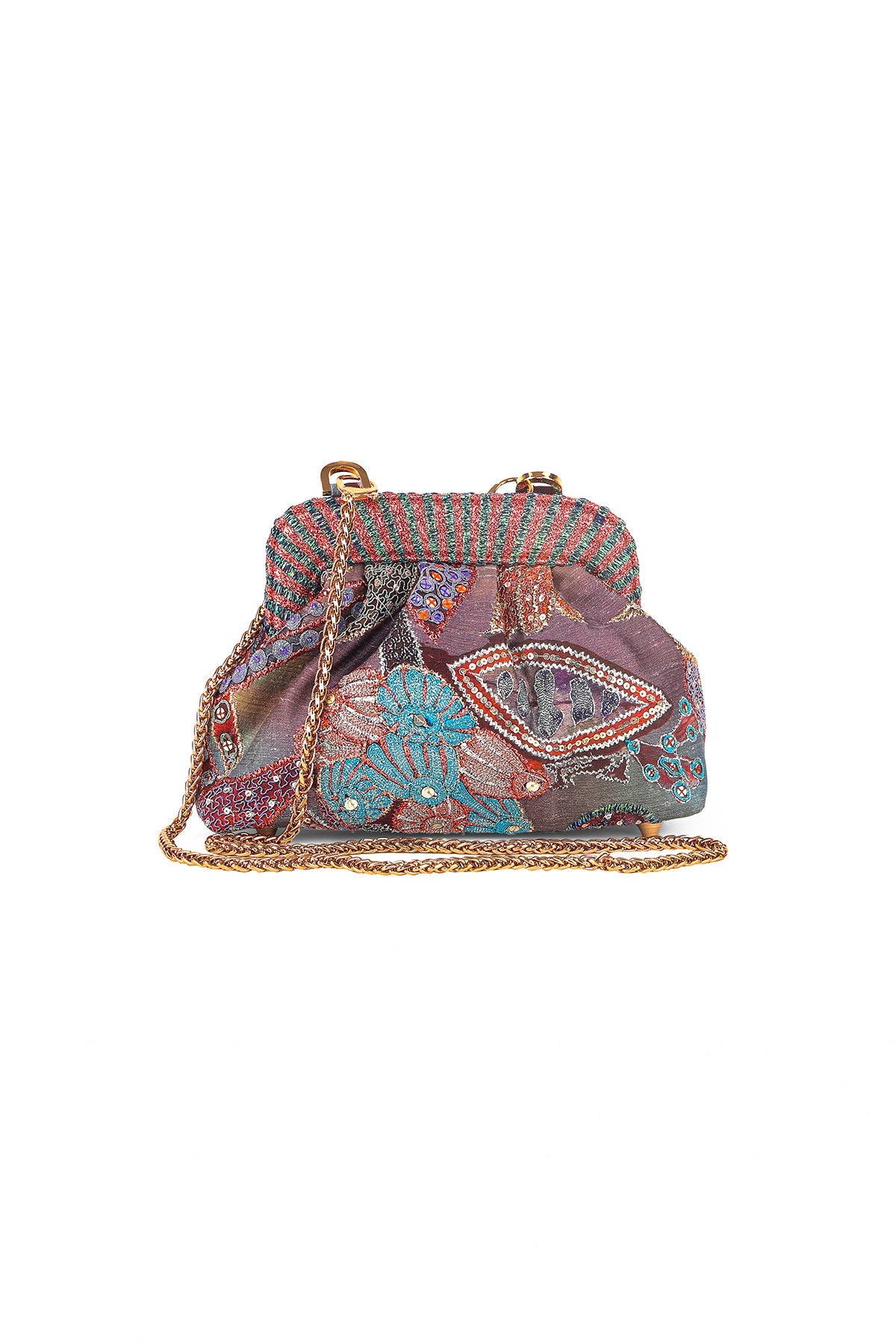 Kinfolk orange blue printed embellished kora gathered frame bag with chain handle