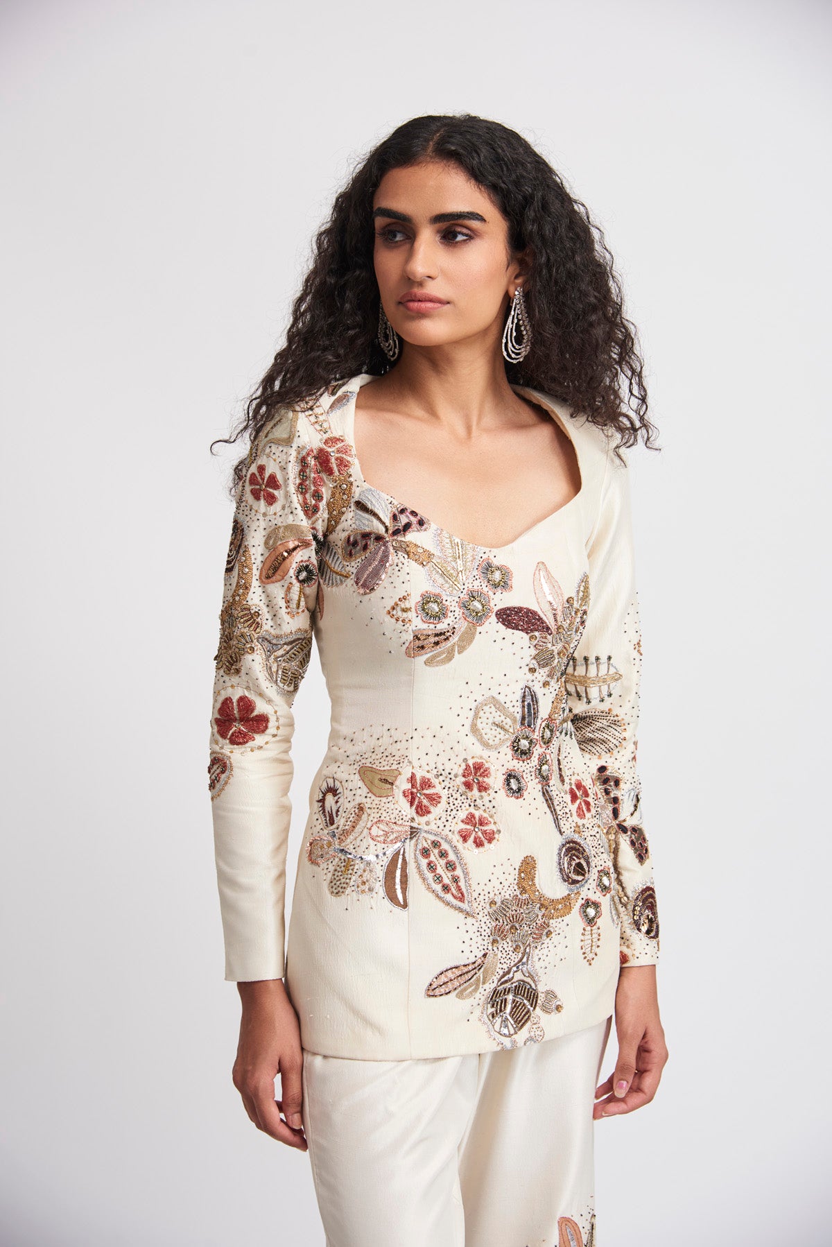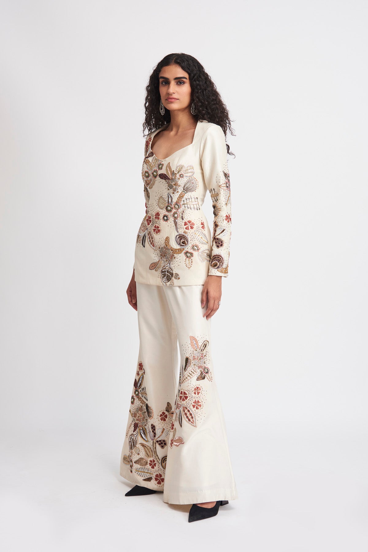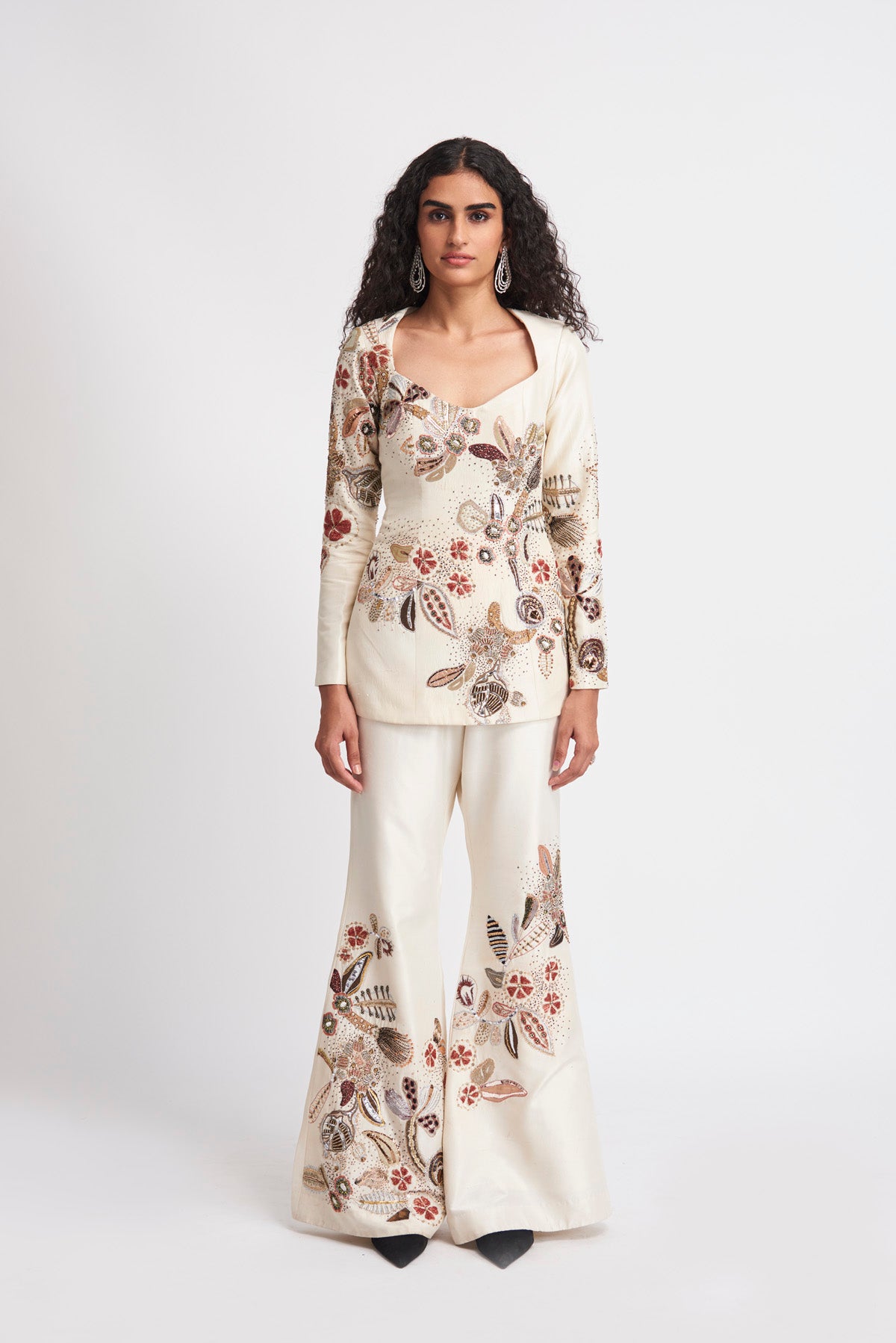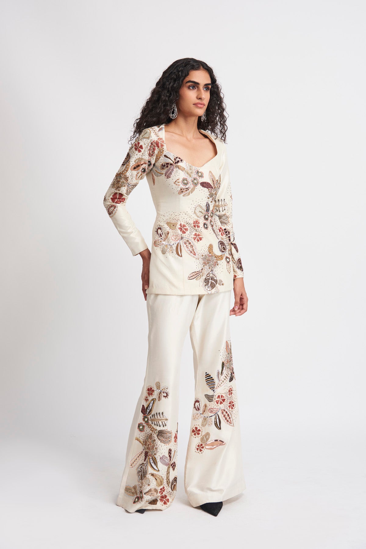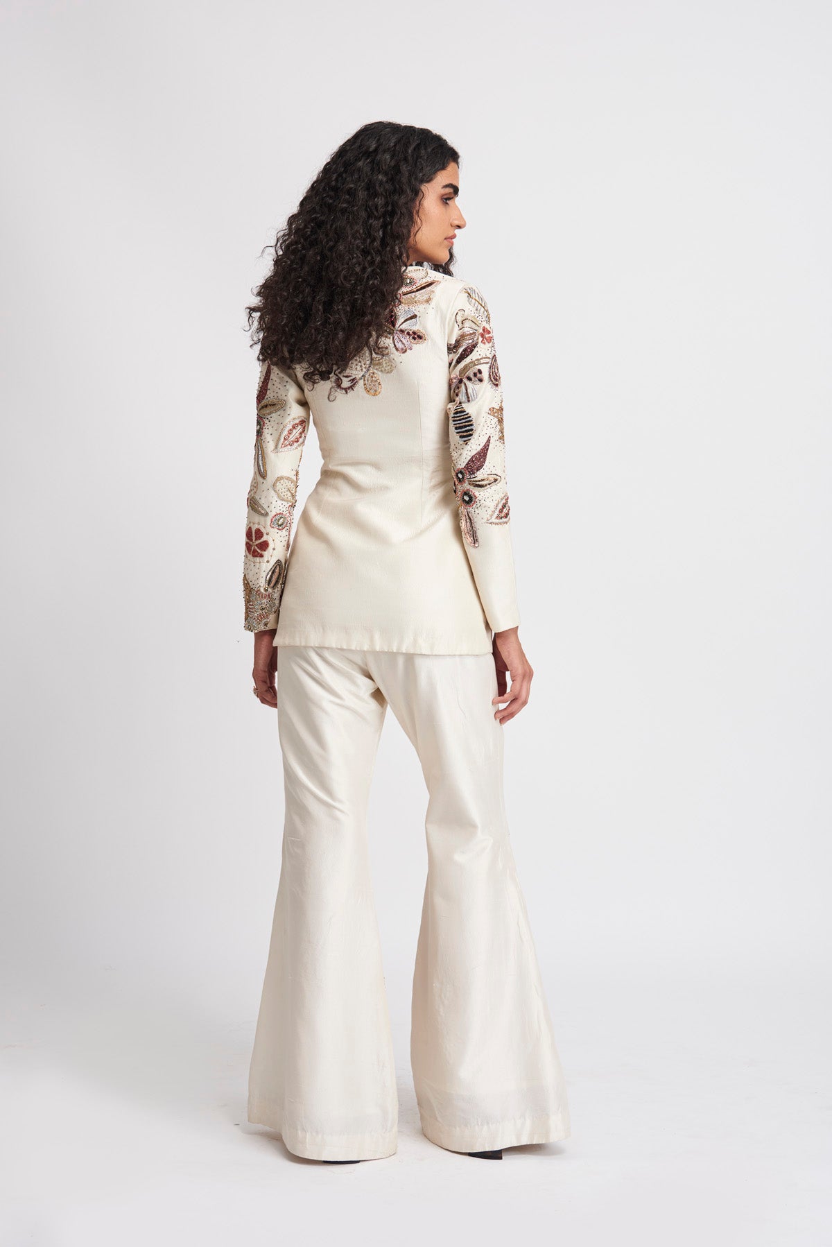 Kinfolk Ivory applique embellished raw silk tunic-pant set