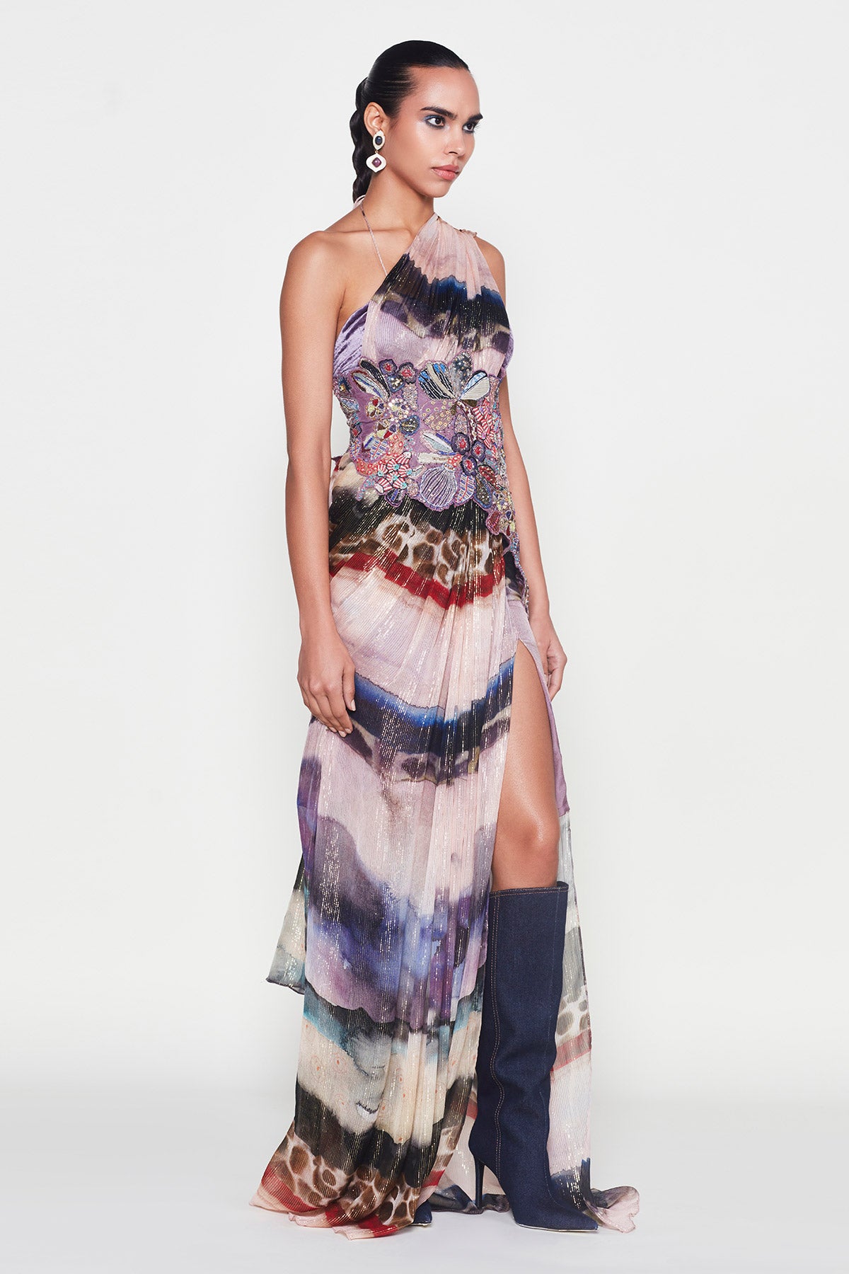This piece by Aisha Rao is handcrafted using upcycled fabrics and artisan techniques. Variations in color, embroidery, print placement, print color, and texture are intentional and reflect the handmade nature of the garment. These differences are a mark of its uniqueness and craftsmanship. No two pieces are exactly alike.