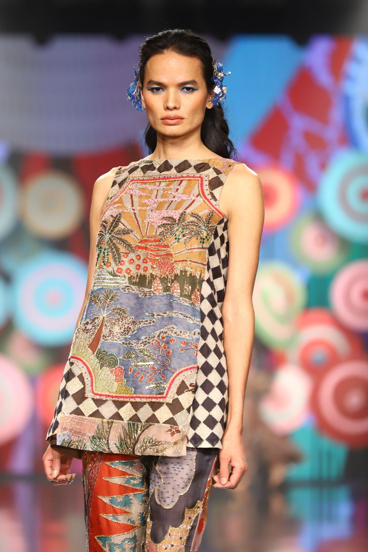 This piece by Aisha Rao is handcrafted using upcycled fabrics and artisan techniques. Variations in color, embroidery, print placement, print color, and texture are intentional and reflect the handmade nature of the garment. These differences are a mark of its uniqueness and craftsmanship. No two pieces are exactly alike.