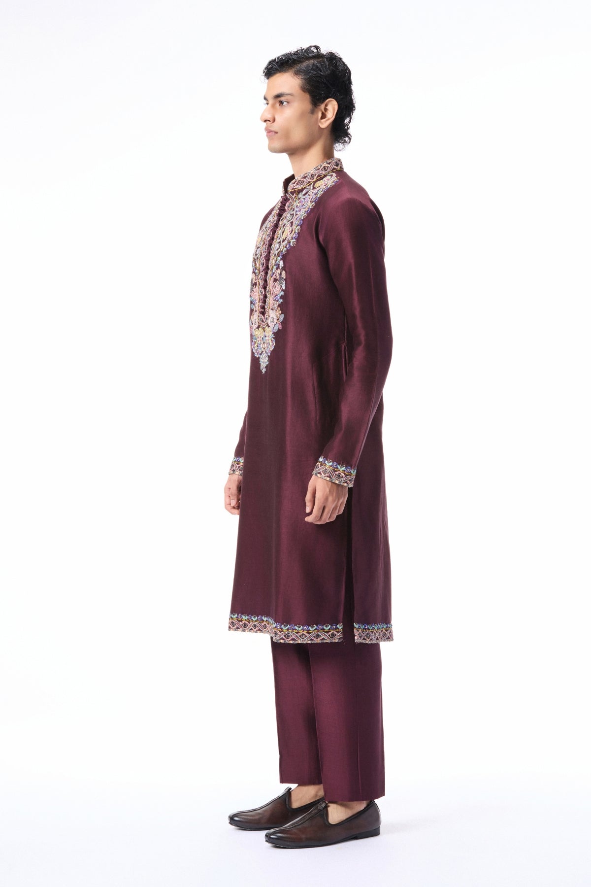 wild at heart teakberry applique embellished chanderi silk kurta pants.