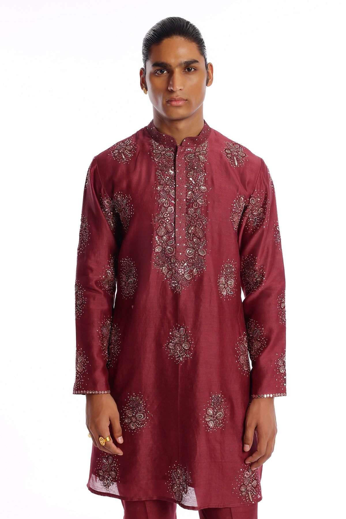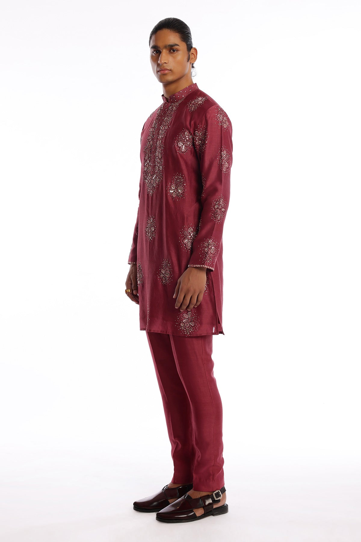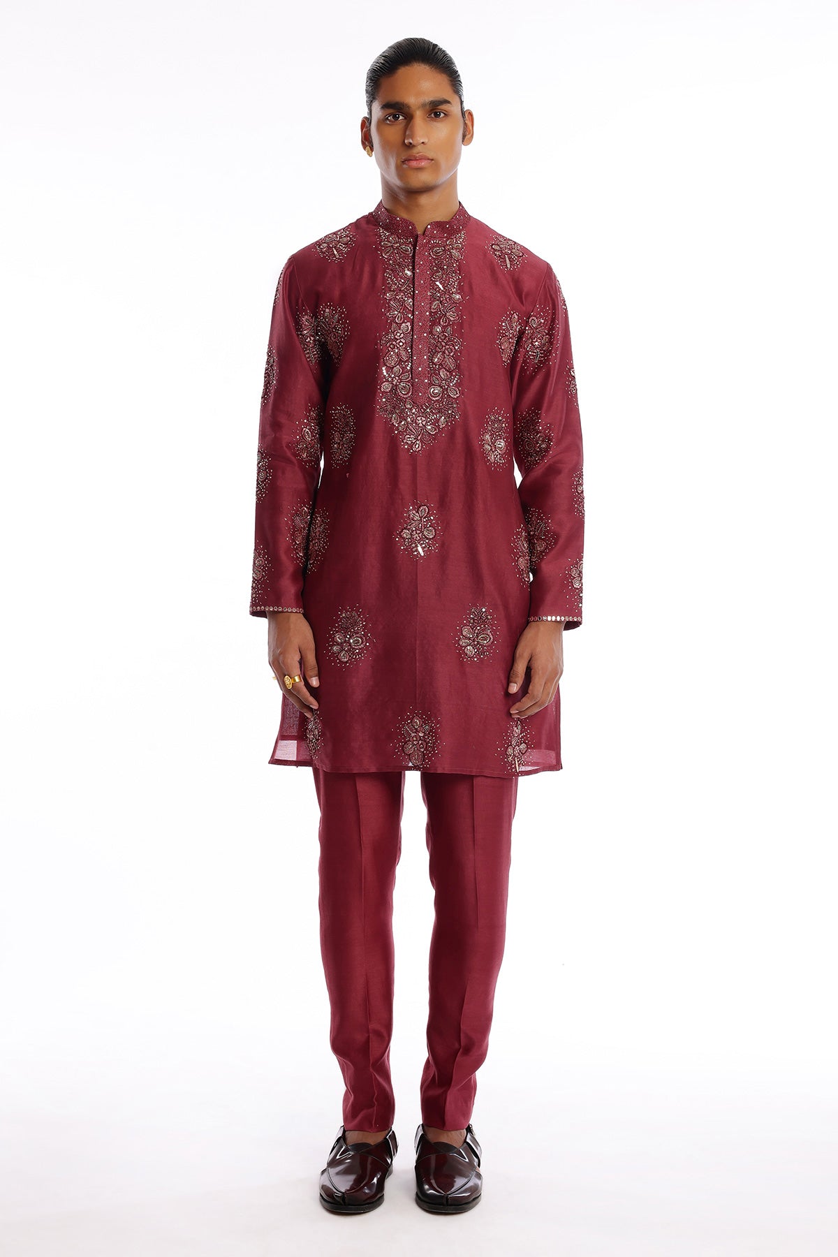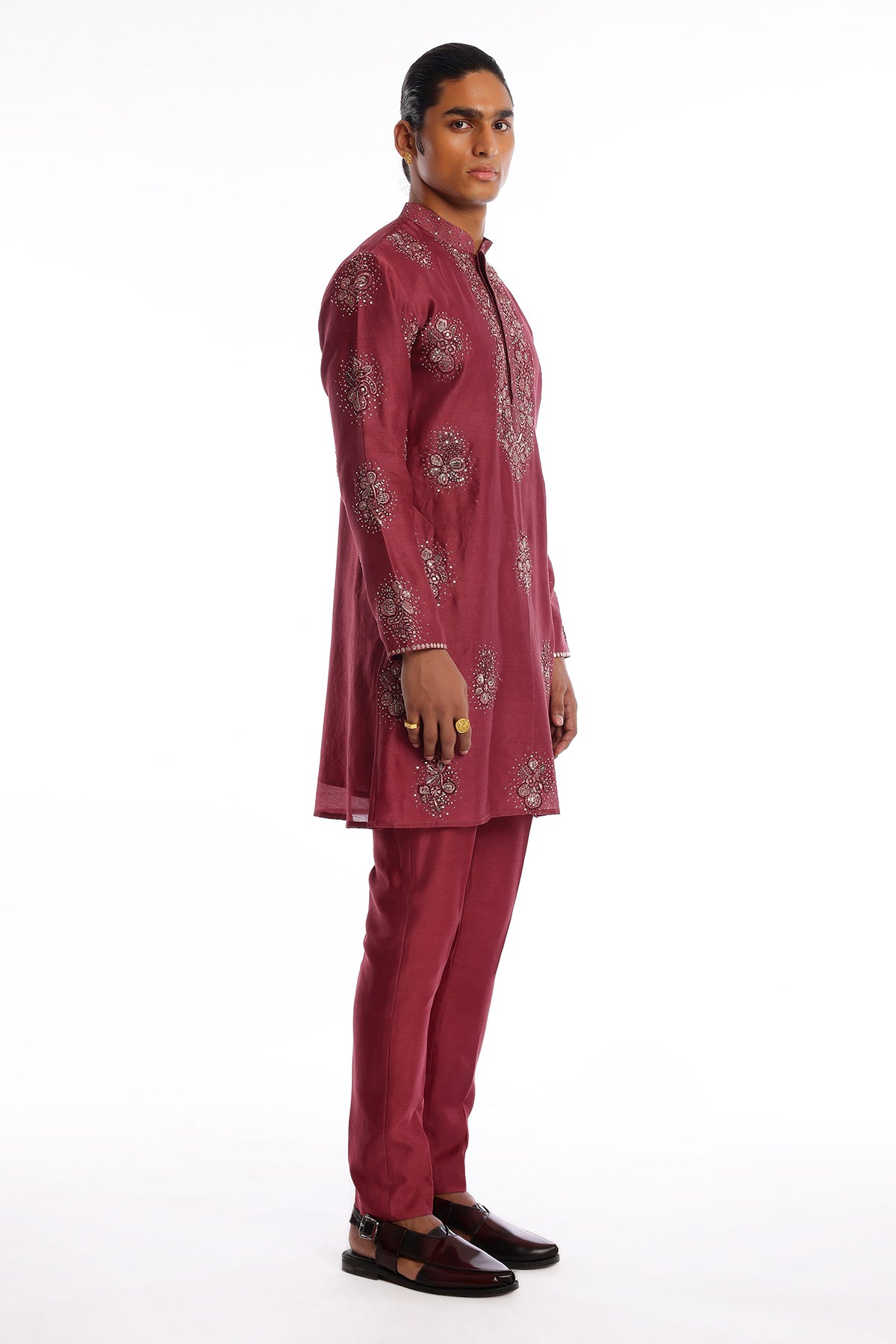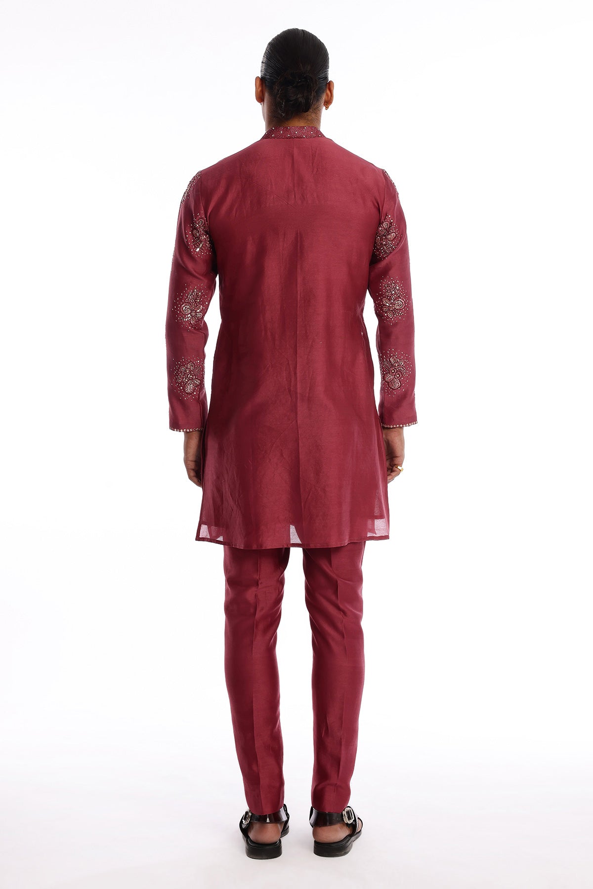 Kinfolk wine embellished chanderi silk kurta & straight pant