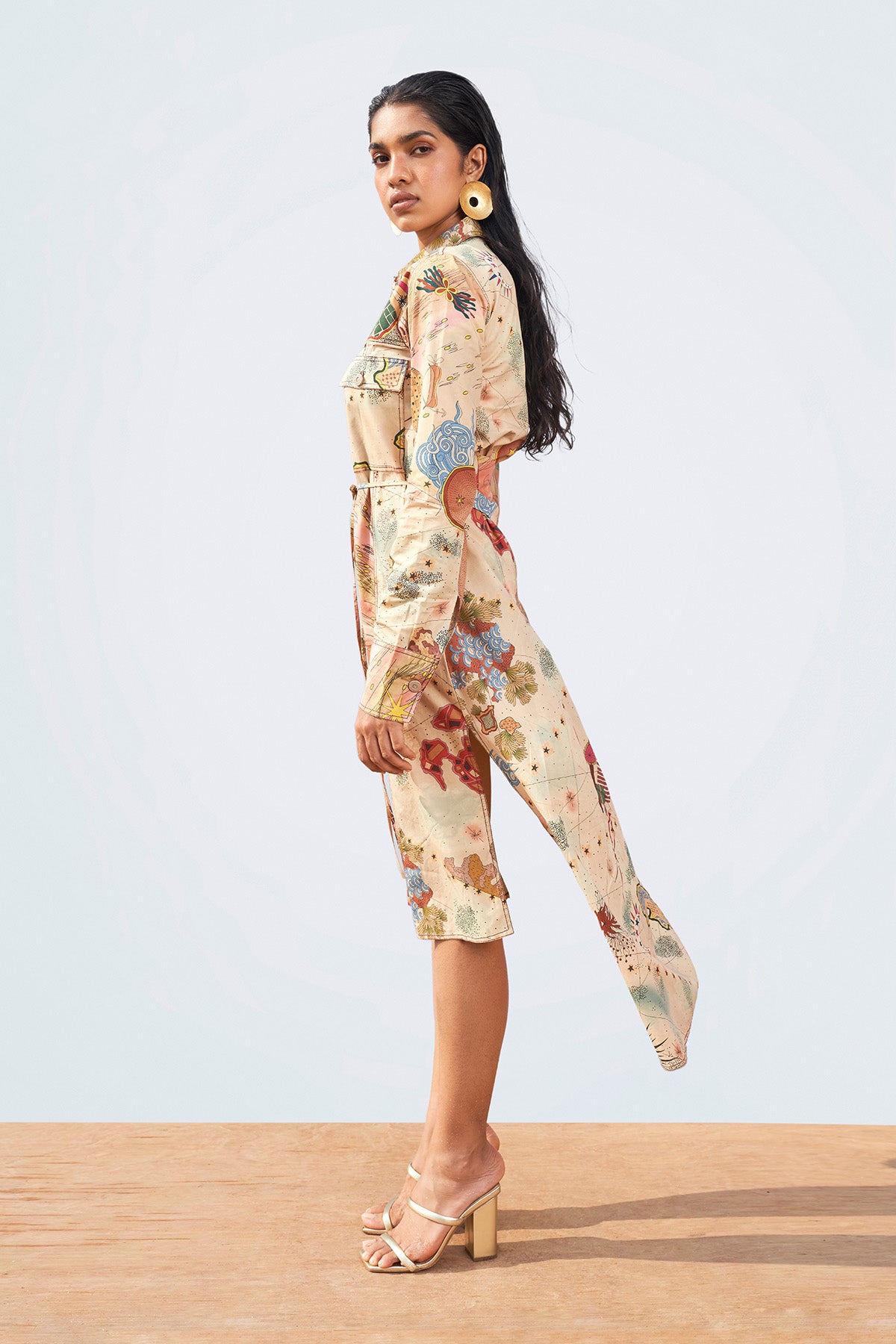 This piece by Aisha Rao is handcrafted using upcycled fabrics and artisan techniques. Variations in color, embroidery, print placement, print color, and texture are intentional and reflect the handmade nature of the garment. These differences are a mark of its uniqueness and craftsmanship. No two pieces are exactly alike.