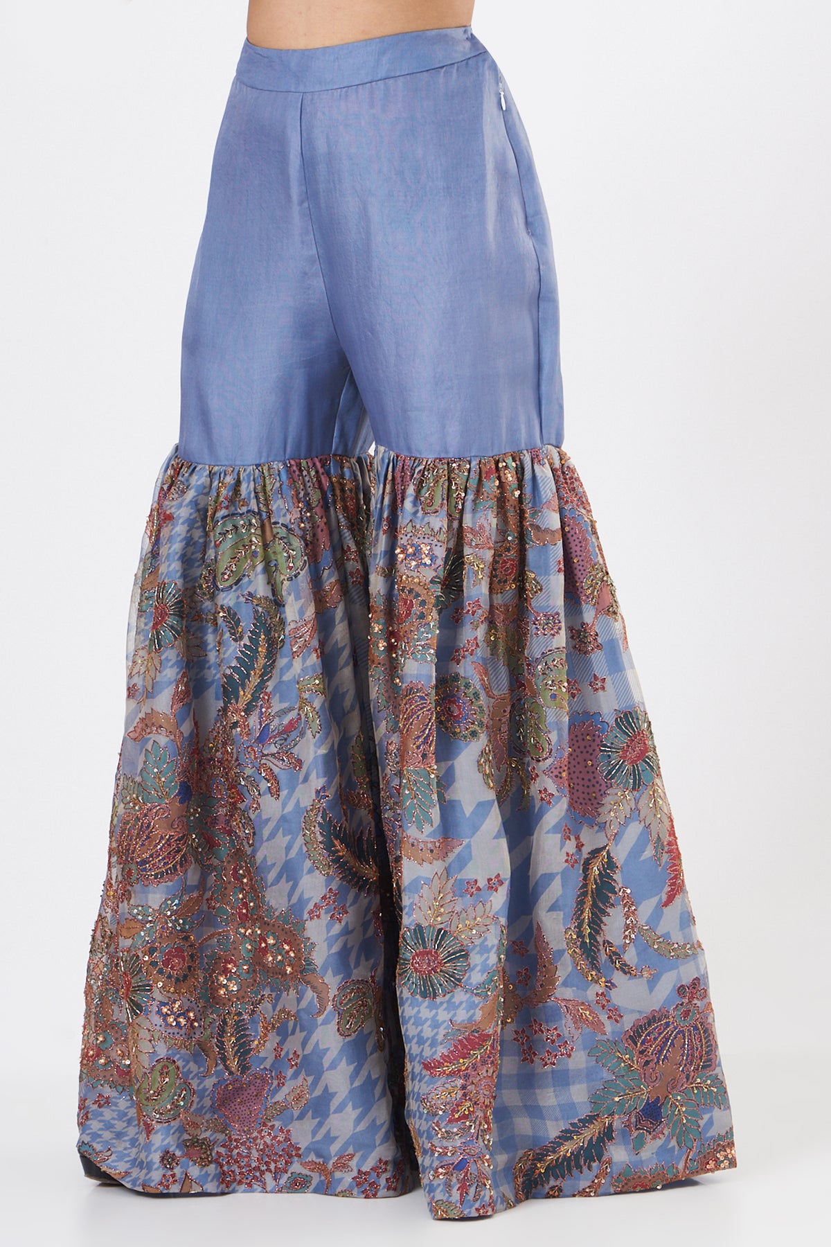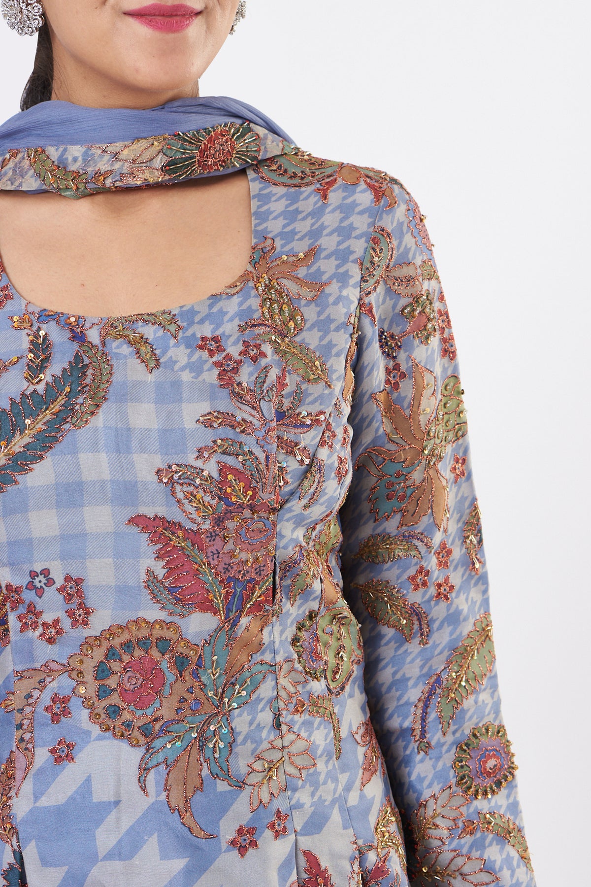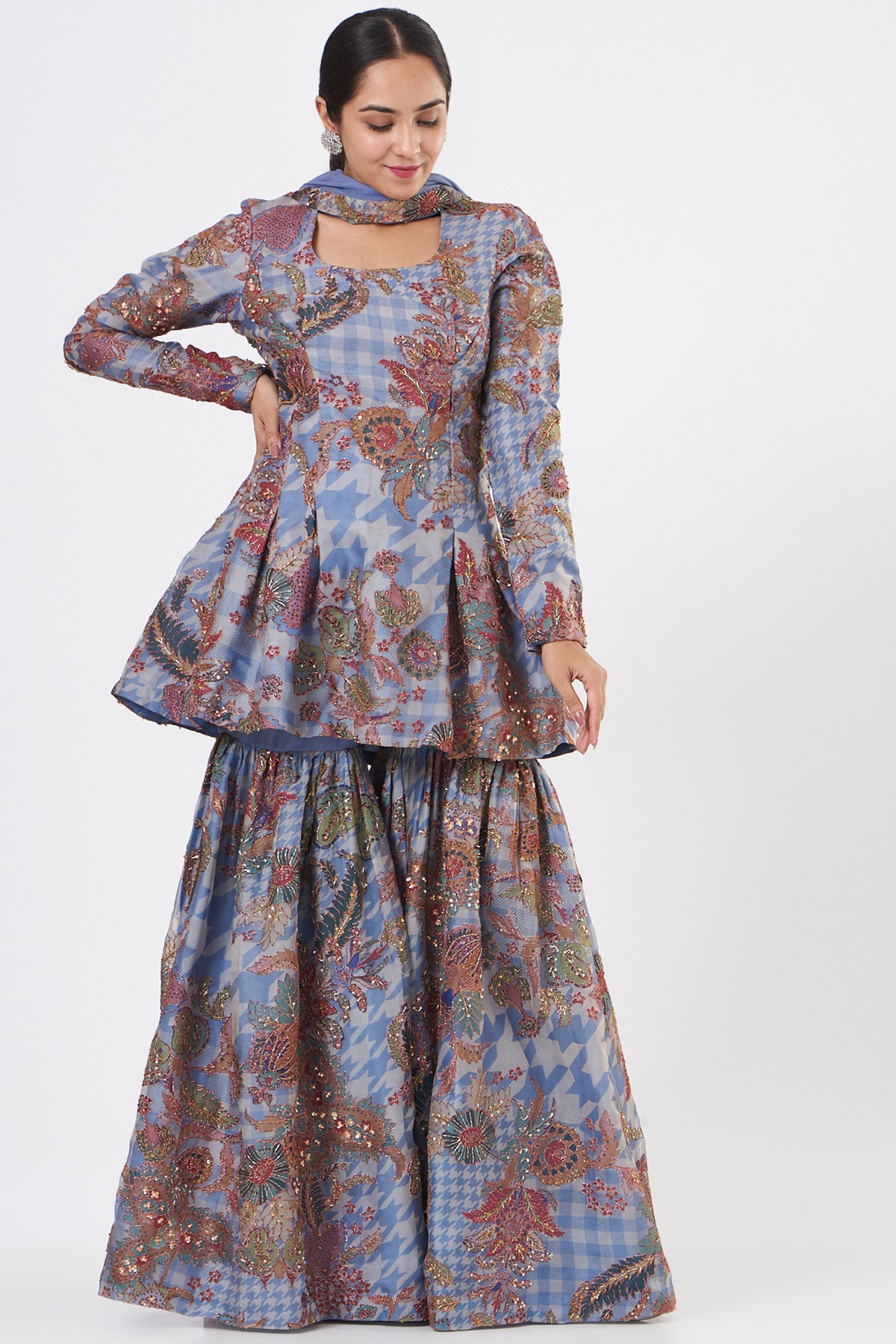 Light Blue Juna Printed And Embellished Organza Sharara Set And Chiffon Dupatta