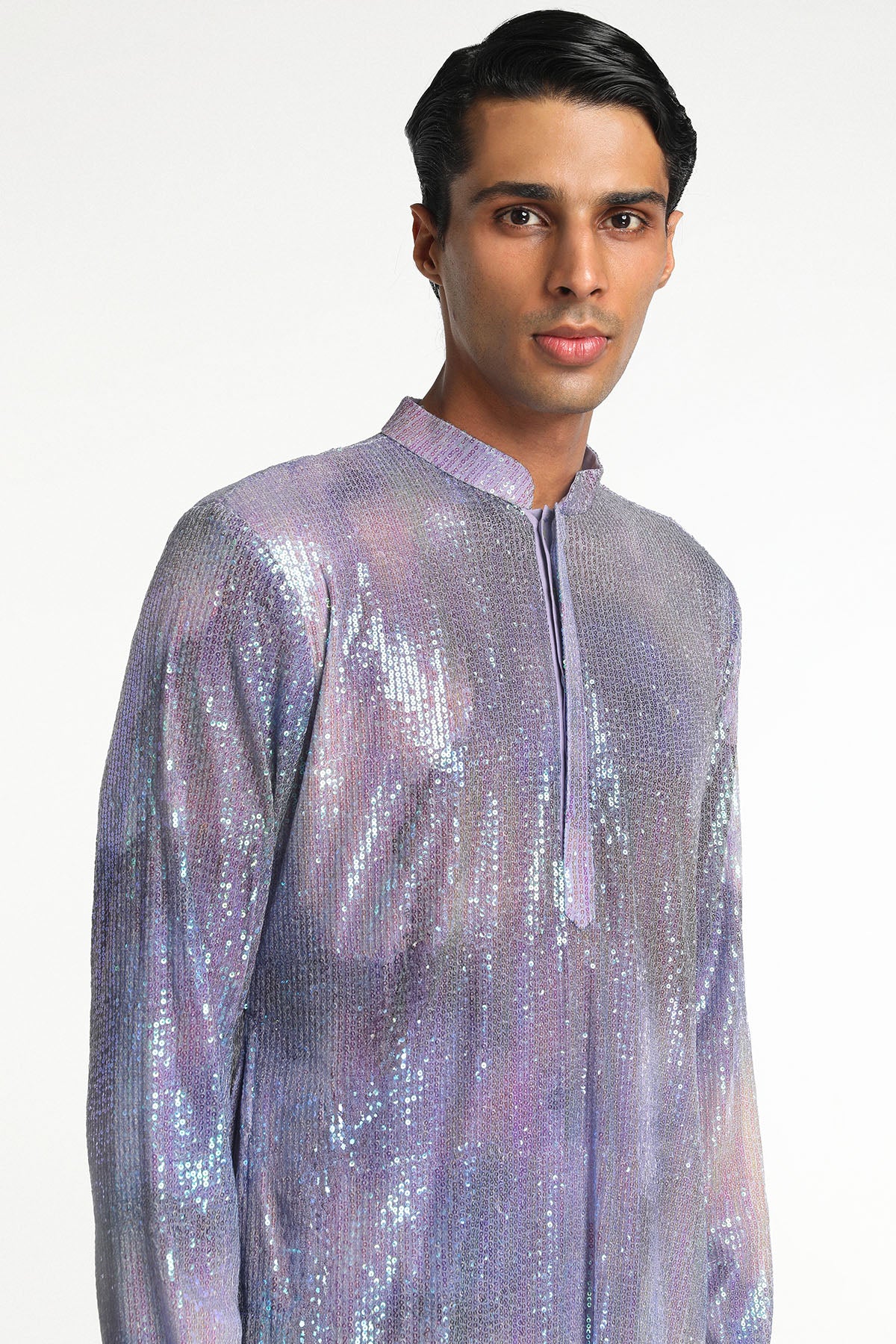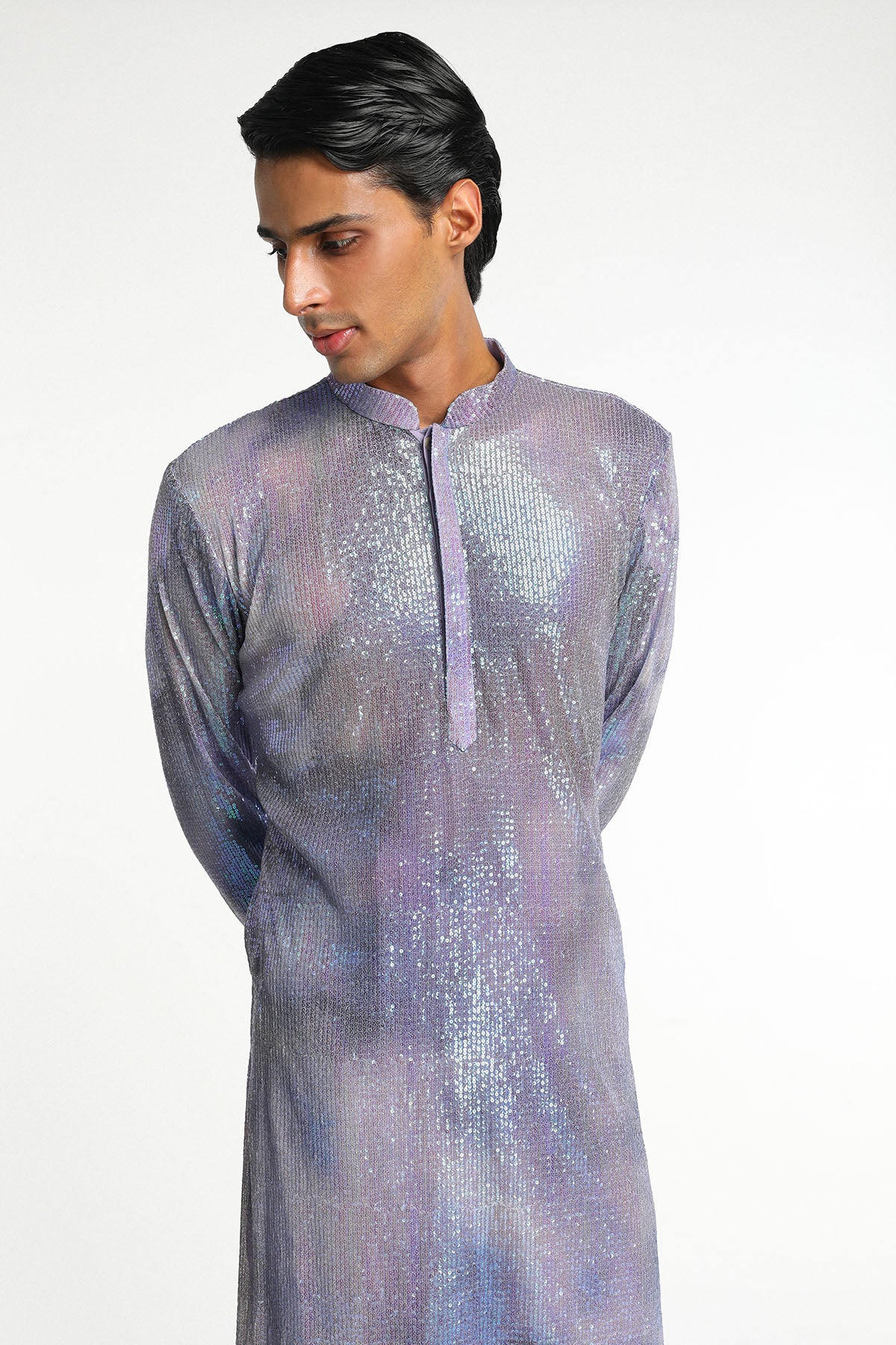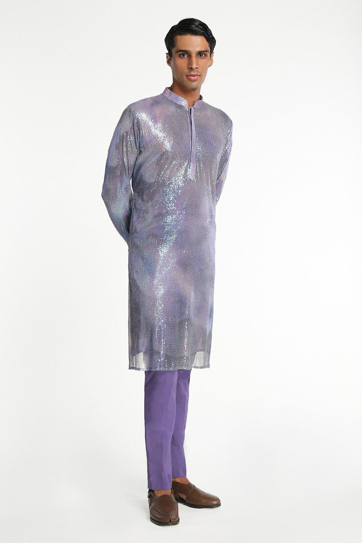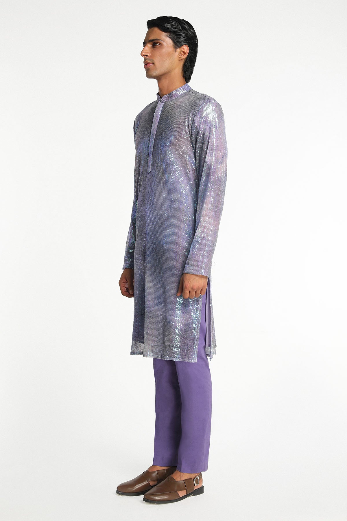 Kinfolk Mist Purple Printed Lurex Kurta with Chanderi Silk Pant