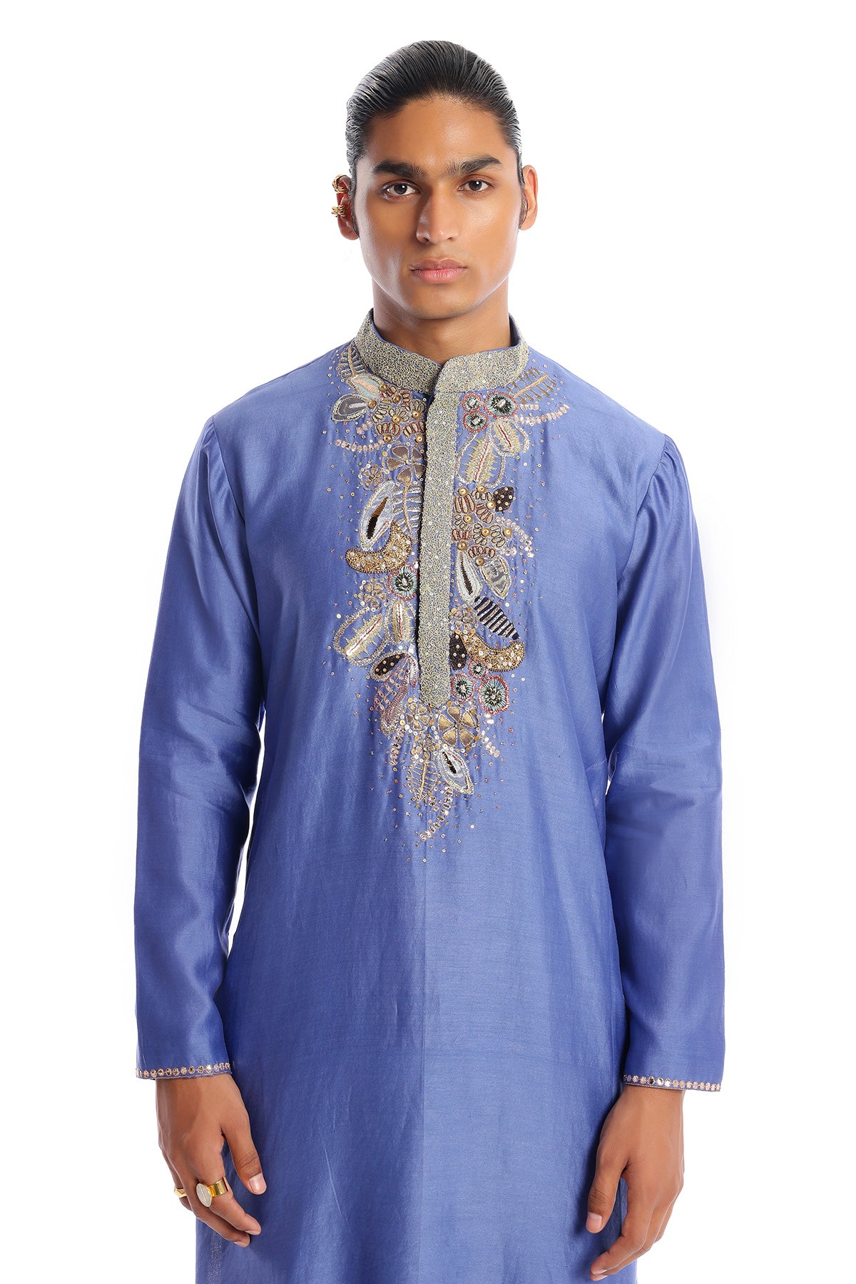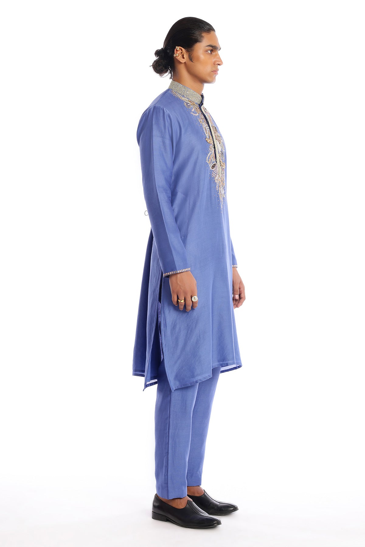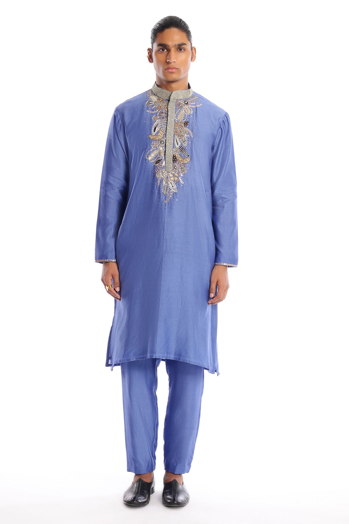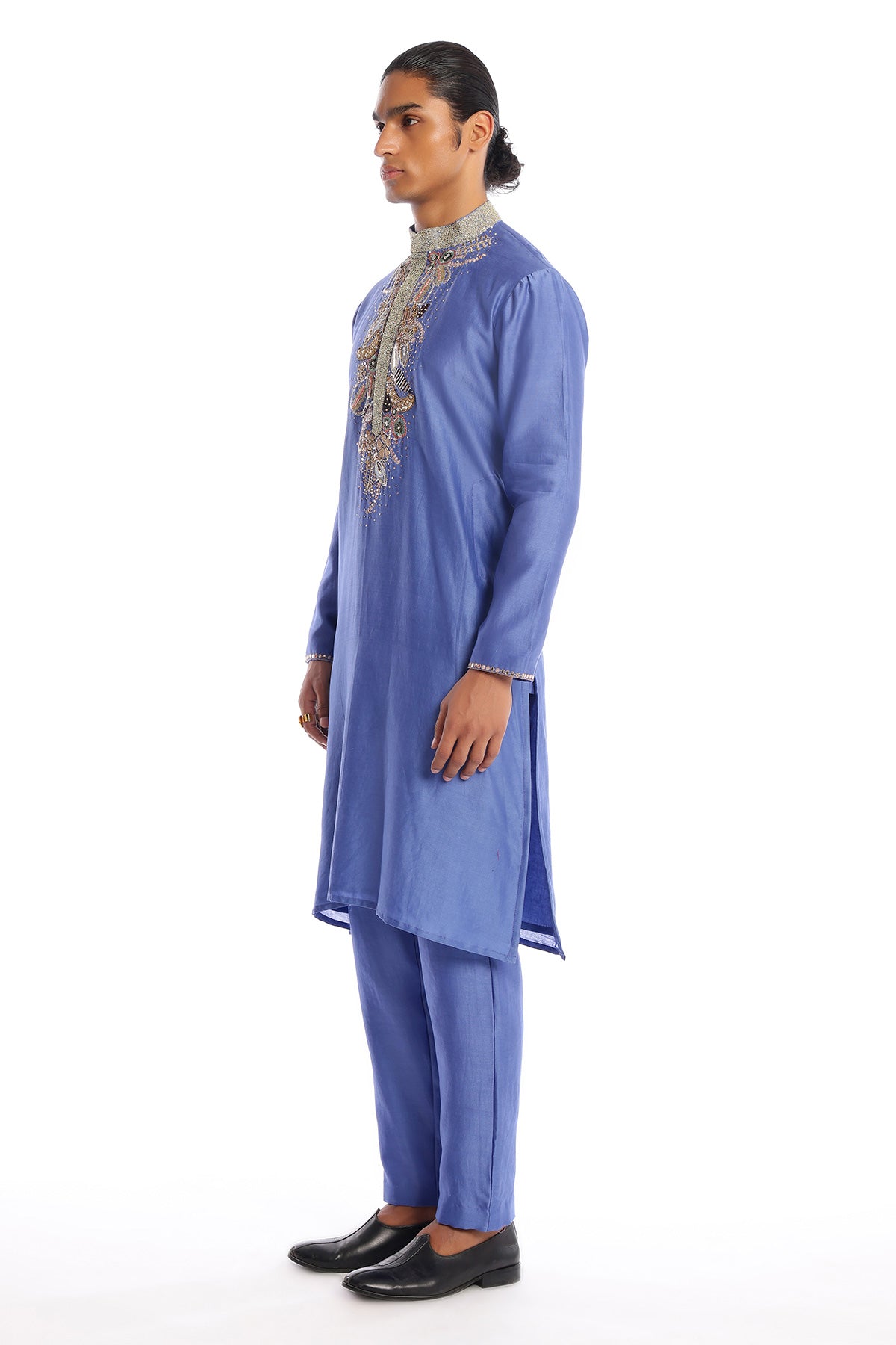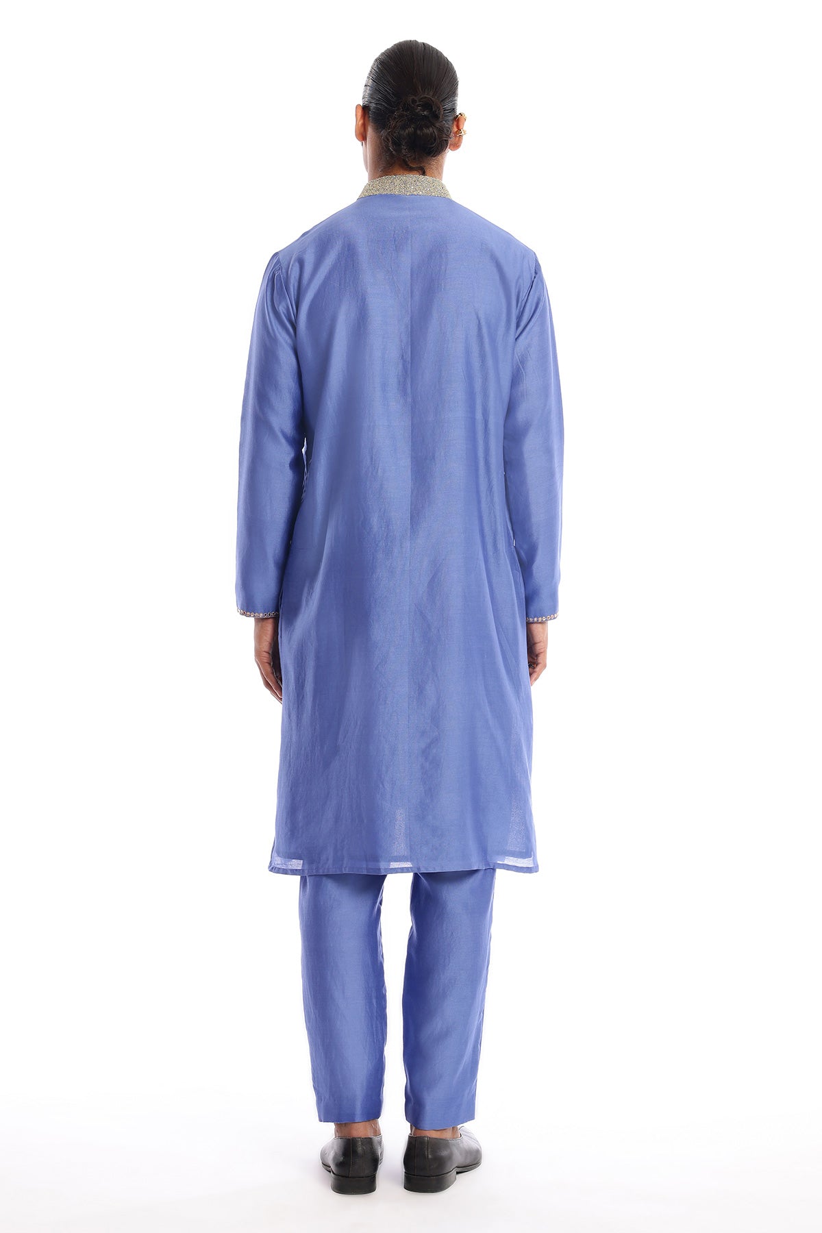 Kinfolk glaucous blue applique embellished chanderi silk kurta & straight pant