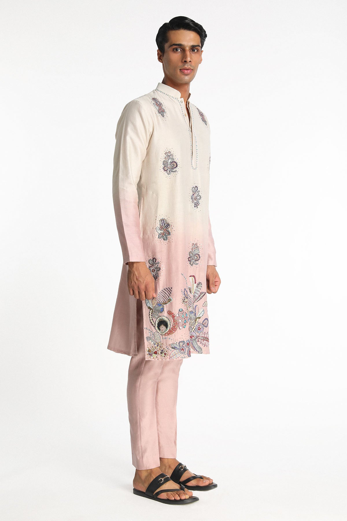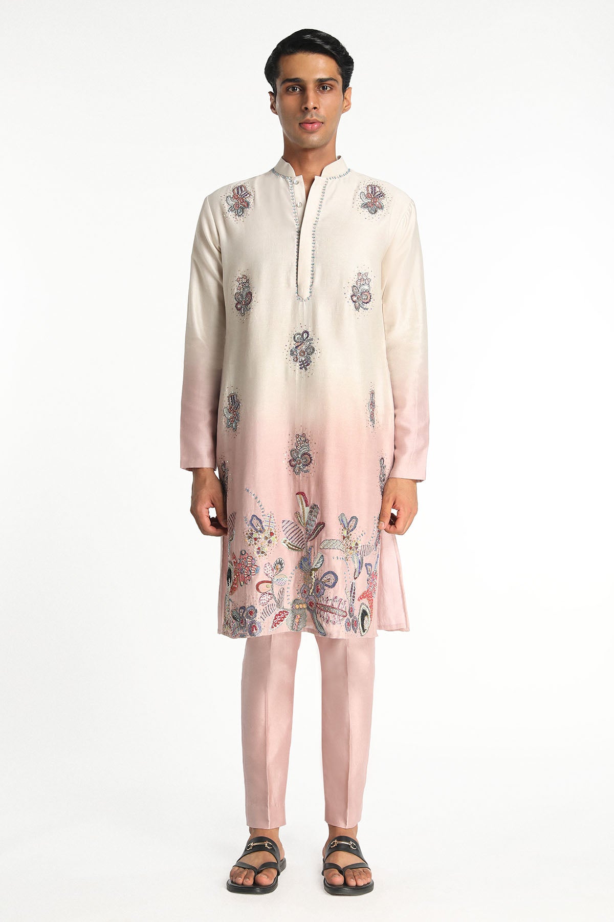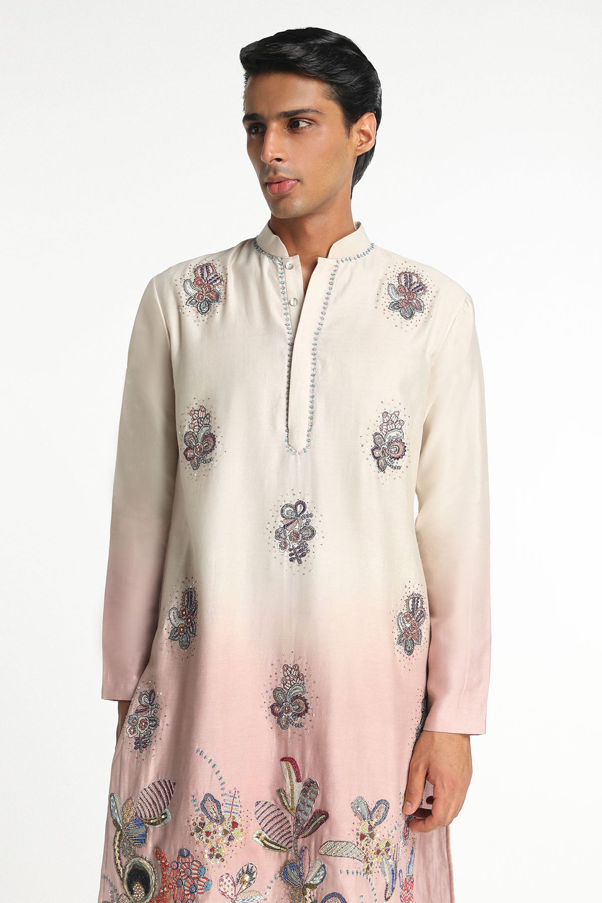 Kinfolk Ivory- Pink Ombre Embellised Chanderi Silk Kurta & Straight Pant