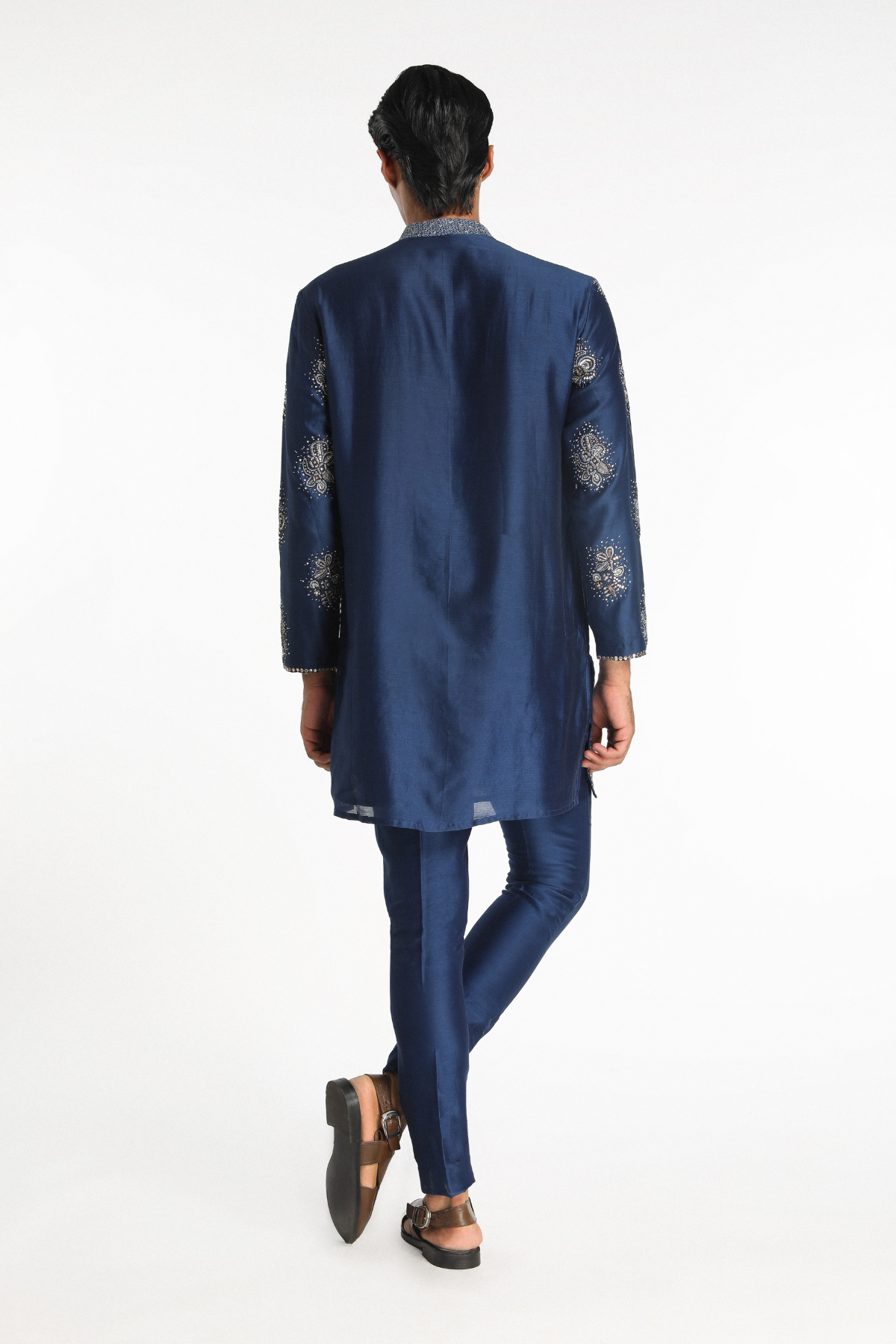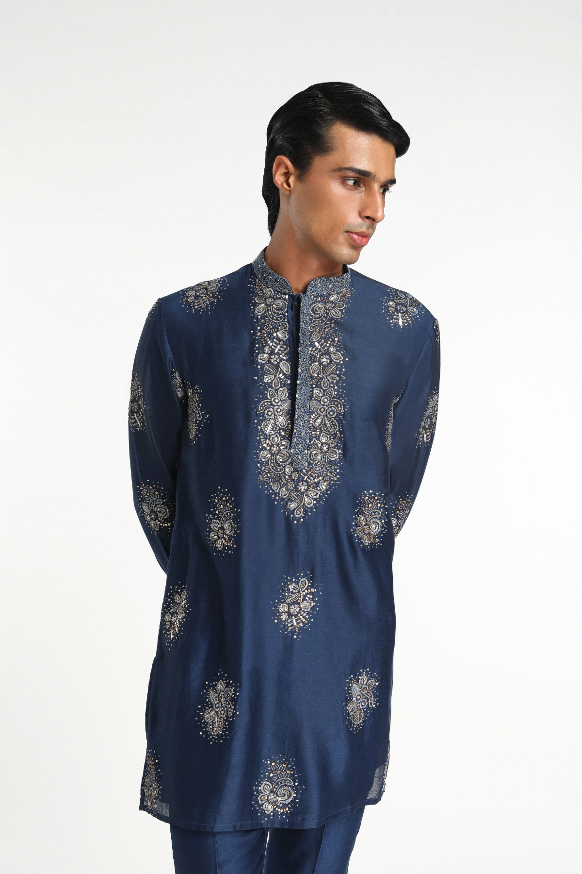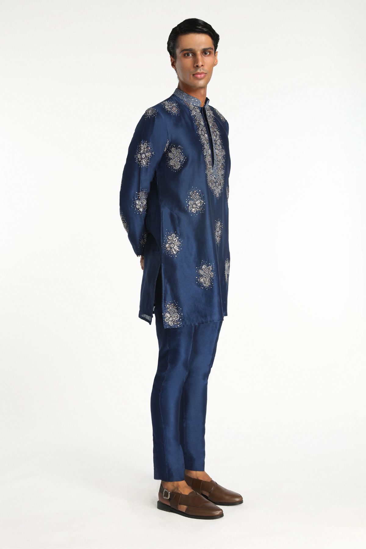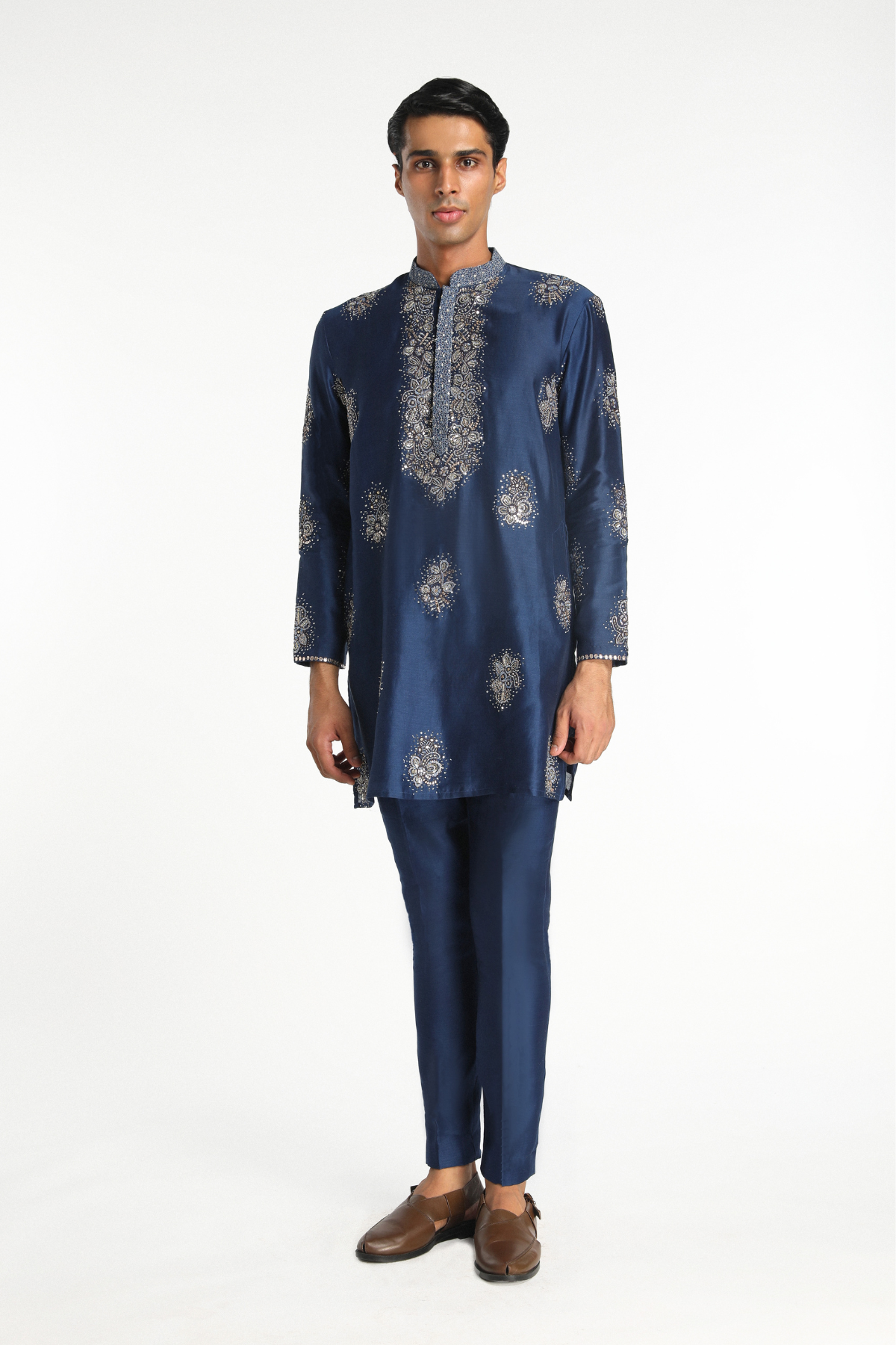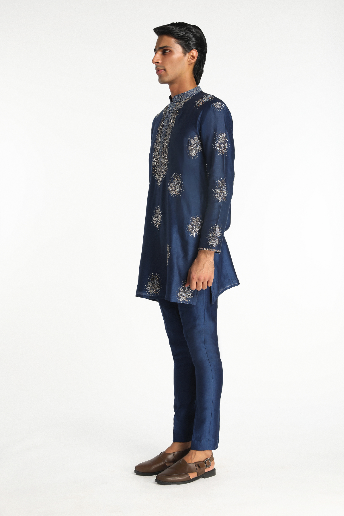 Kinfolk navy blue embellished chanderi silk kurta & straight pant