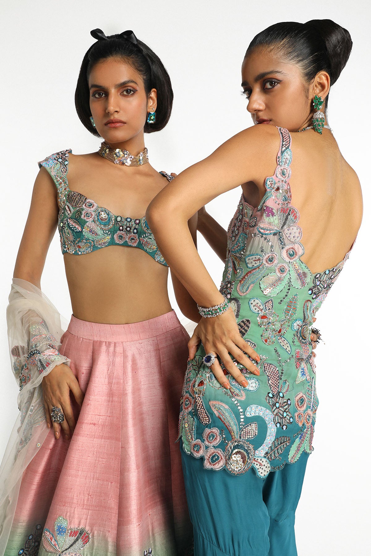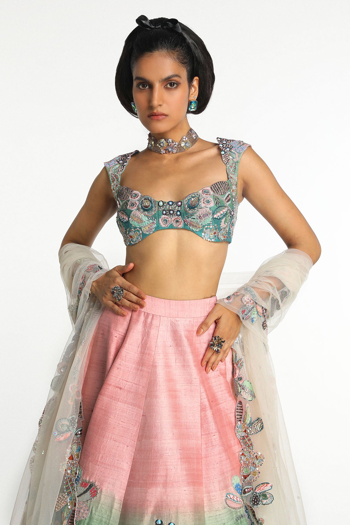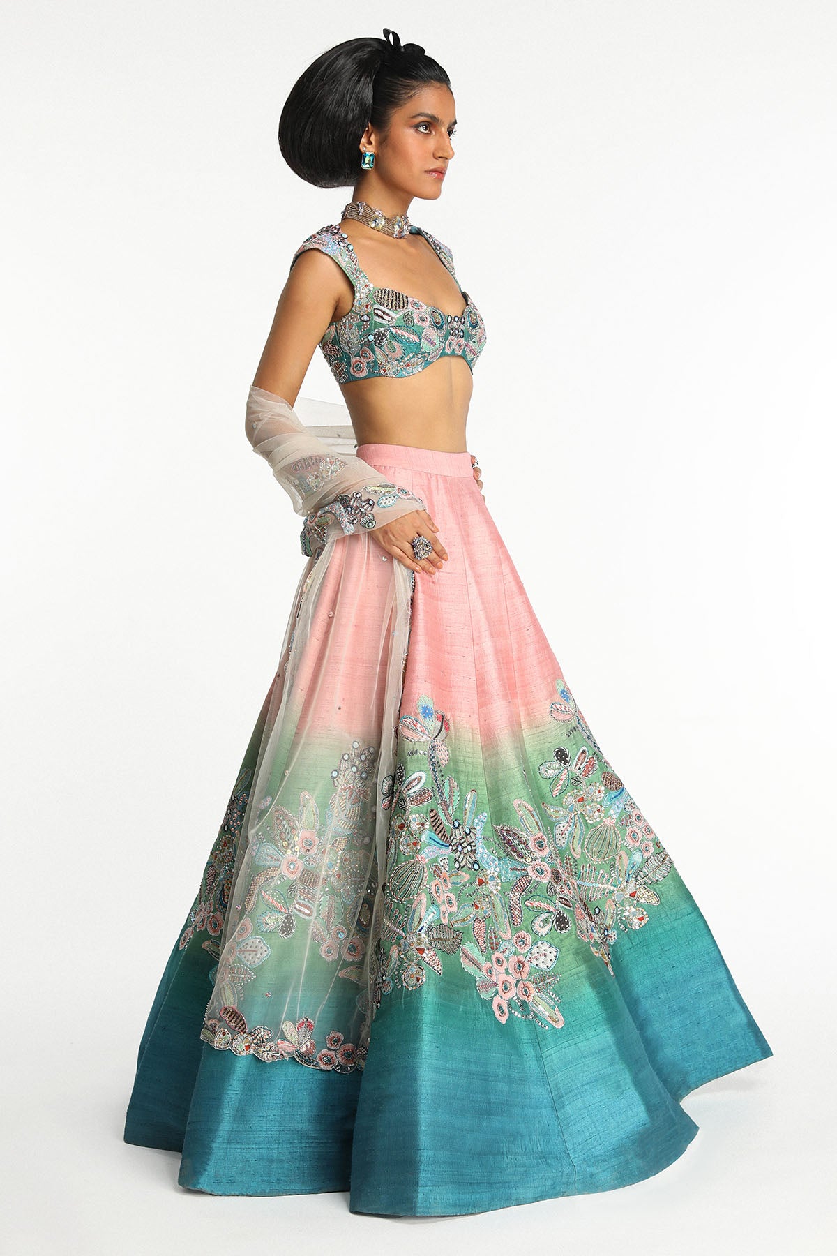 Kinfolk Aurora Ombre Applique Embellished Raw Silk Lehenga, blouse & Tulle Dupatta