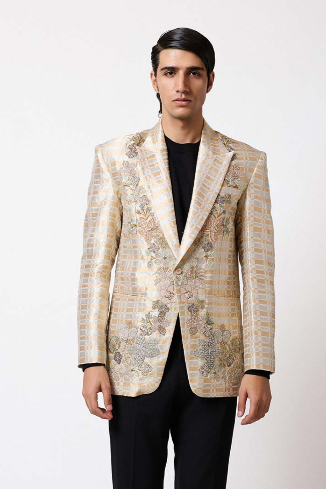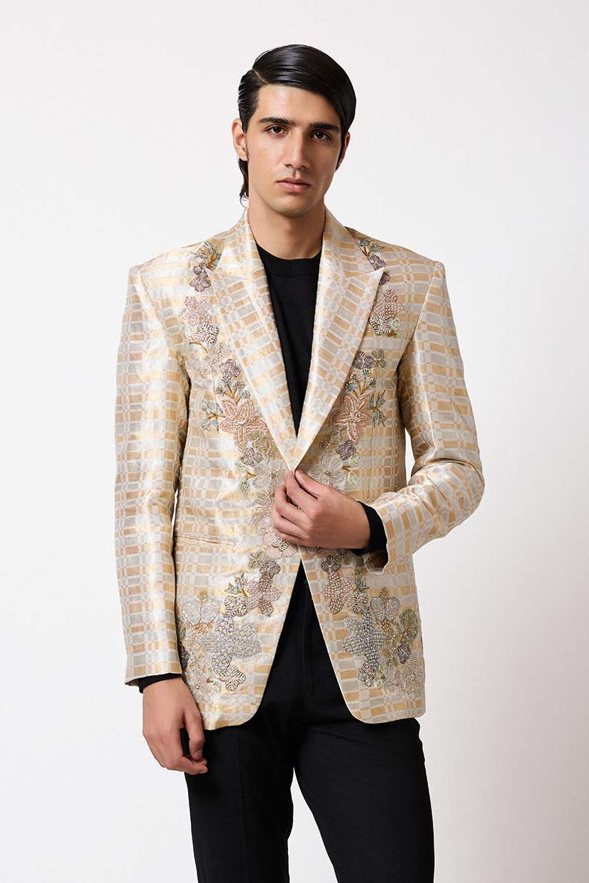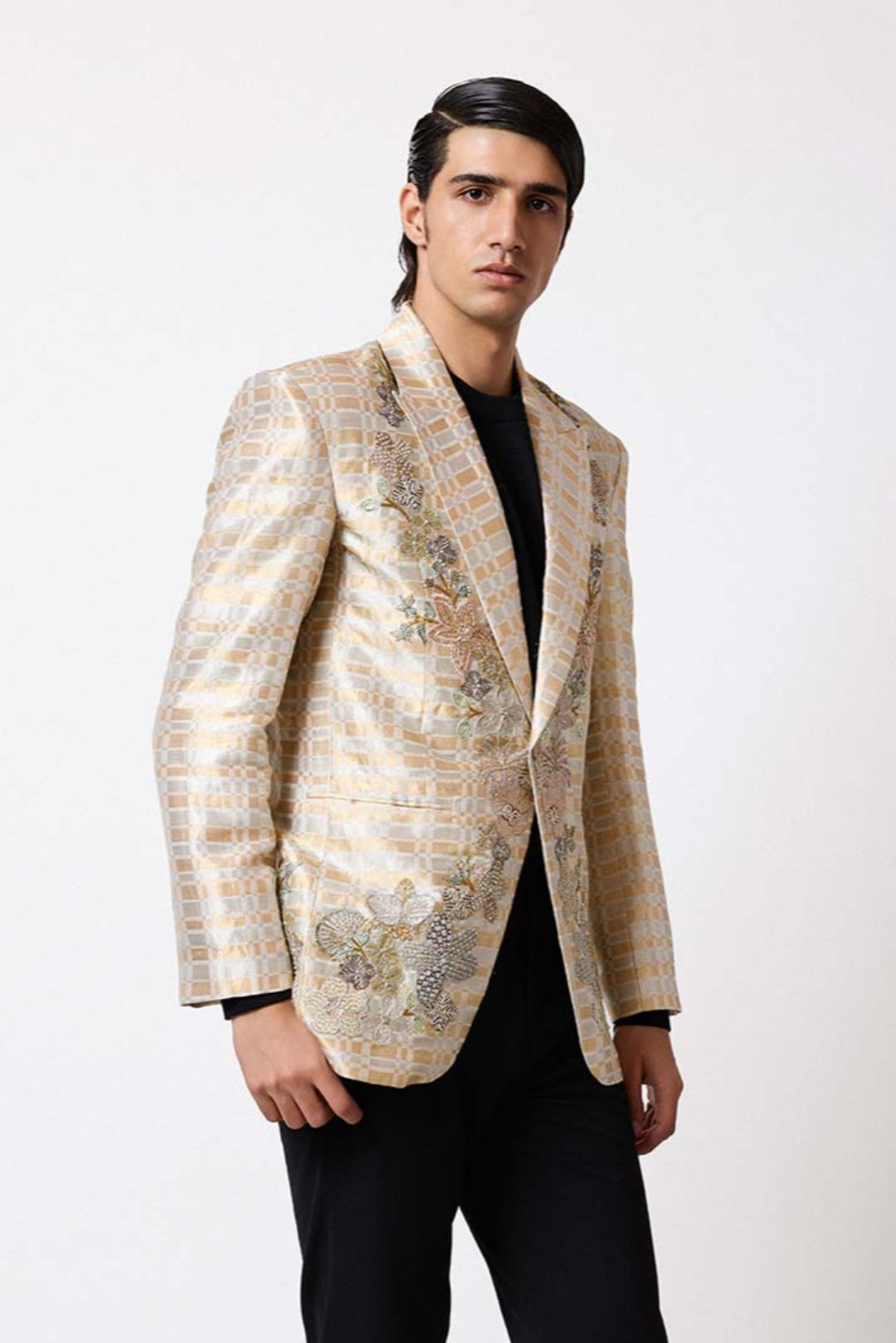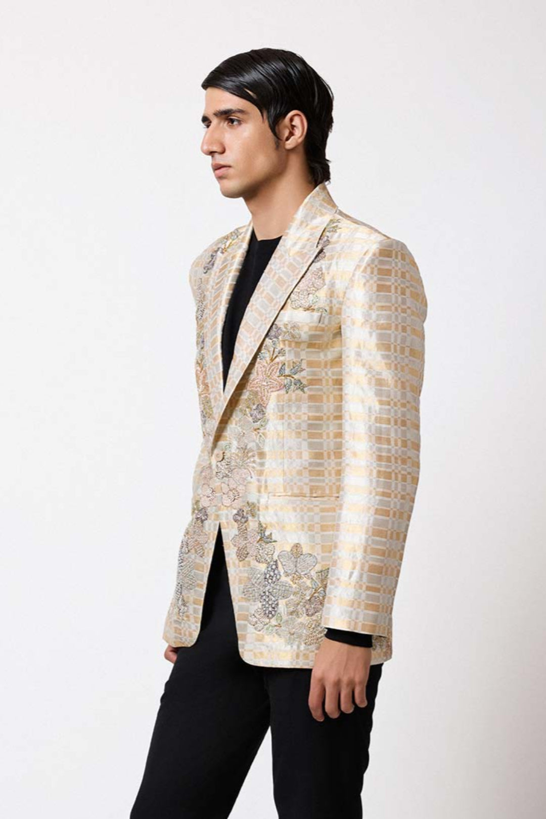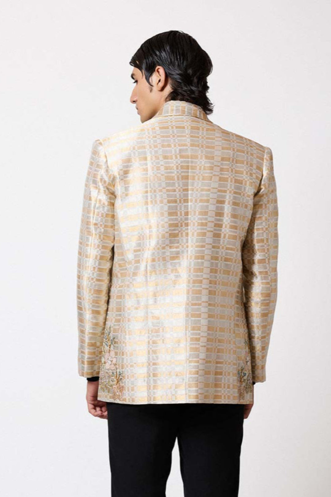 Matilda Ivory - Gold Applique Embellished Banarasi Tissue Brocade Blazer